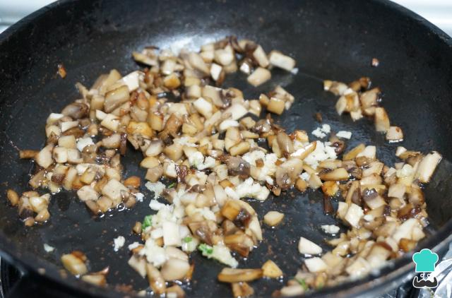 Pica un ajo o dos y el perejil, agrega ambos ingredientes a la sartén y sigue cocinando vigilando que no se queme el ajo. Pon un poco de sal y pimienta.
