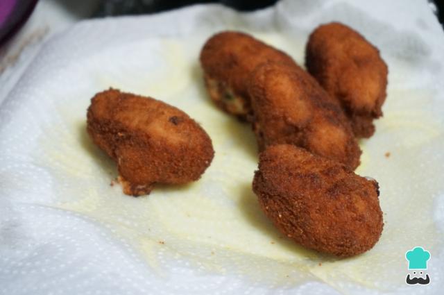 Calienta una sartén con abundante aceite a fuego medio y, cuando esté caliente, fríe las croquetas de champiñones en tandas pequeñas hasta que estén doradas. Sácalas y déjalas en un plato con papel de cocina para que absorba el aceite que sueltan.
