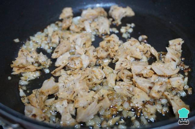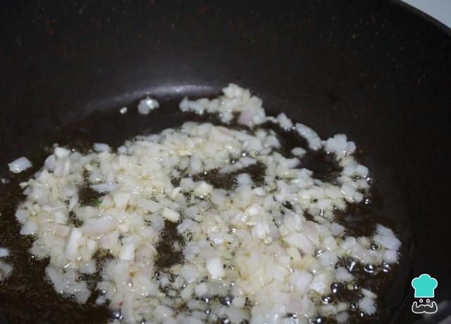 Pela y pica la cebolla muy pequeña. Calienta una sartén con un chorro de aceite y pocha la cebolla hasta que empiece a coger color.