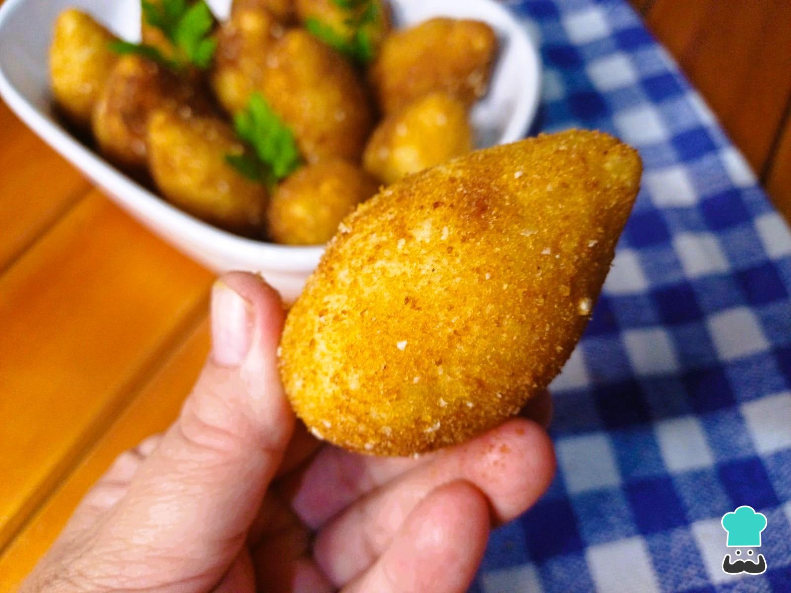 Vamos a aprender a hacer una deliciosa receta croquetas de patata y pollo típicas de la gastronomía portuguesa. De masa sabrosa y suave, crujiente por fuera y relleno de pollo jugoso y bien condimentado por dentro, ¡toda una delicia que no puedes perderte!