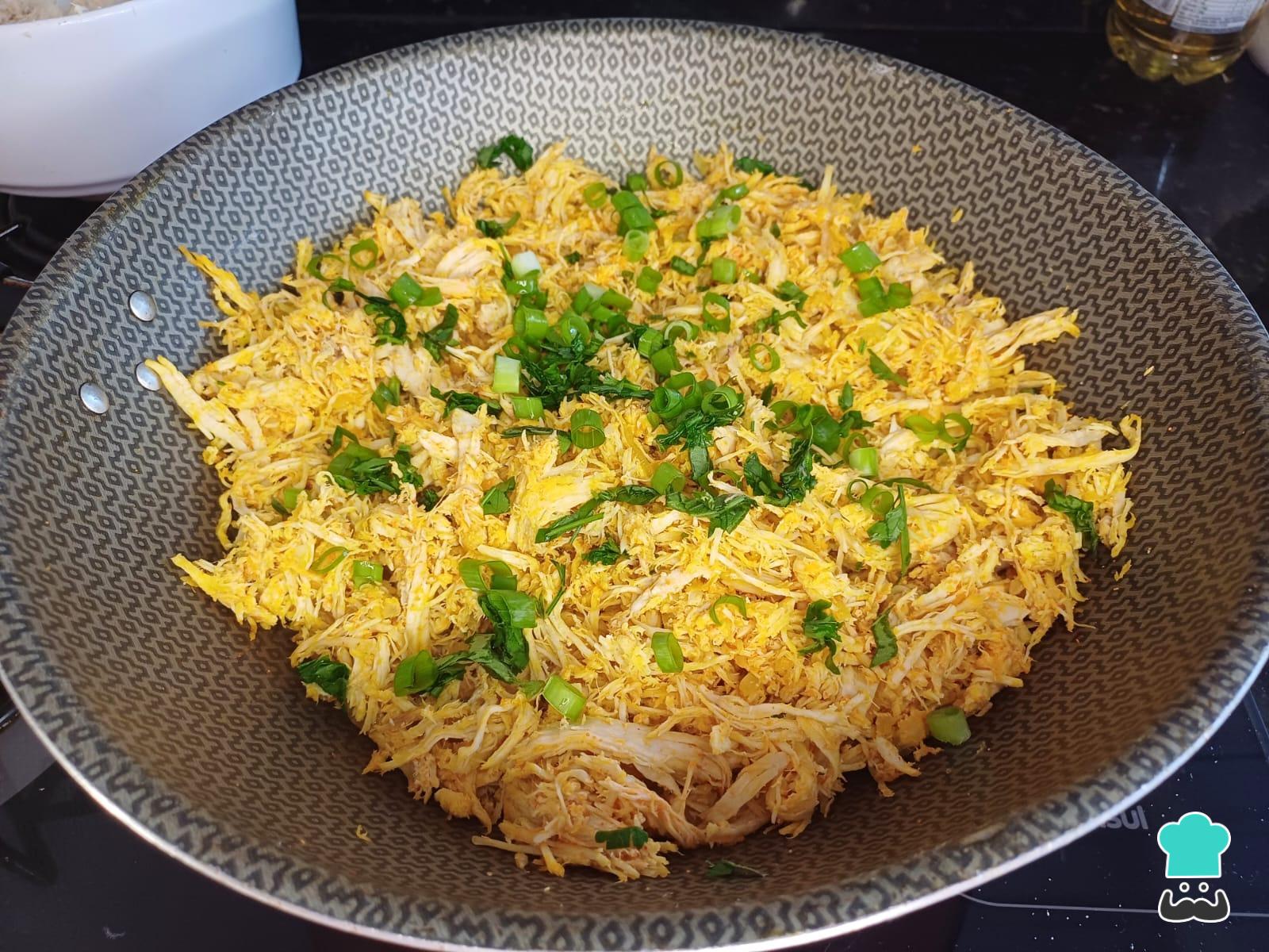Agrega el pollo desmenuzado, sazona con sal y mezcla bien. Apagar el fuego y añade el perejil, el cebollino y la albahaca finamente picados. Deja enfriar la preparación.