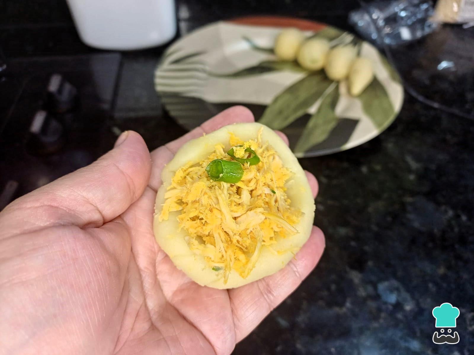 Cierra la masa alrededor del relleno dándole forma de muslo si te apetece una presentación más llamativa. Si no, puedes darle forma redondeada o alargada, ¡cómo más te guste!