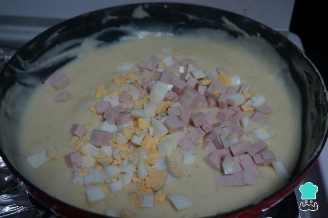 Lo removeremos y mezclaremos bien. Probaremos de sal. Dejaremos enfriar en la nevera el relleno de las croquetas de huevo duro.