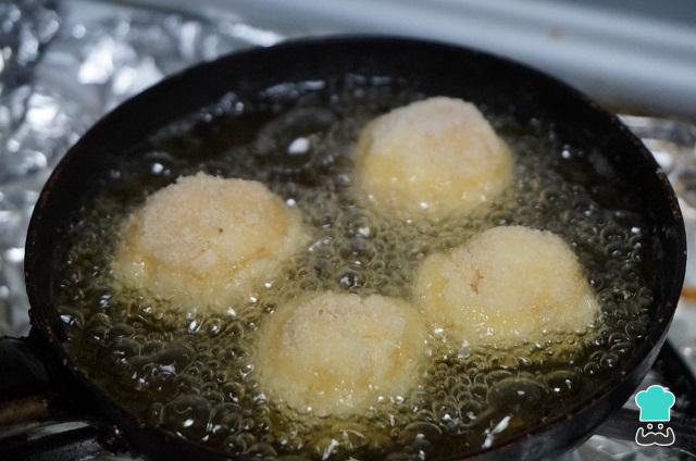 Pondremos una sartén con bastante aceite a calentar e iremos friendo las croquetas de pavo, poco a poco.