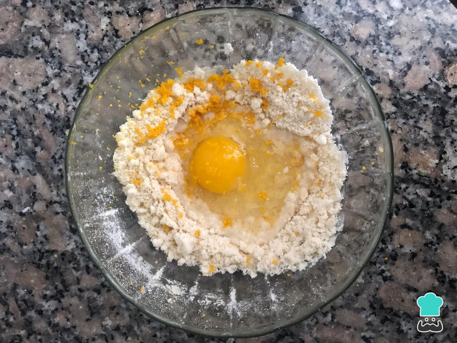 Agrega el huevo y el jugo de naranja. Mezcla enérgicamente hasta que estén bien integrados estos ingredientes y quede una mezcla sin grumos.