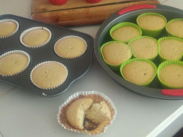 Cocinar los cupcakes caseros en el horno por 25 minutos o hasta que un pincho al introducirlo en la mezcla salga seco. Una vez retirados del horno, dejar enfriar antes de decorar.