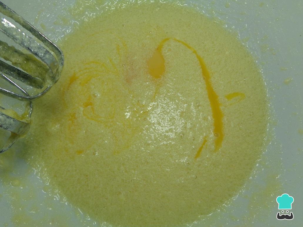 Una vez listos añadimos los huevos y nuevamente batimos hasta integrar todo muy bien.
