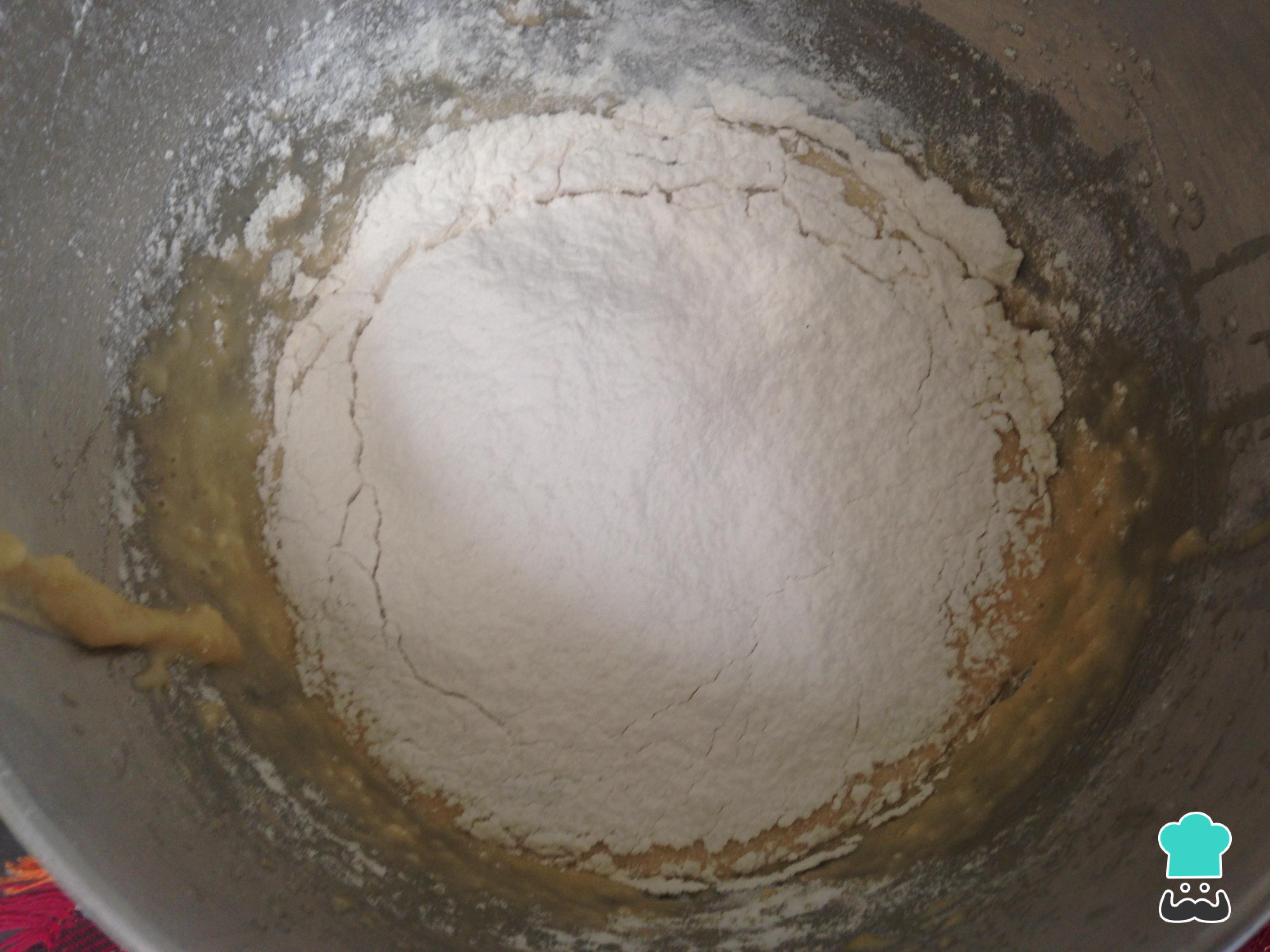 Agregar la harina con el polvo de hornear y mezclar hasta integrar.