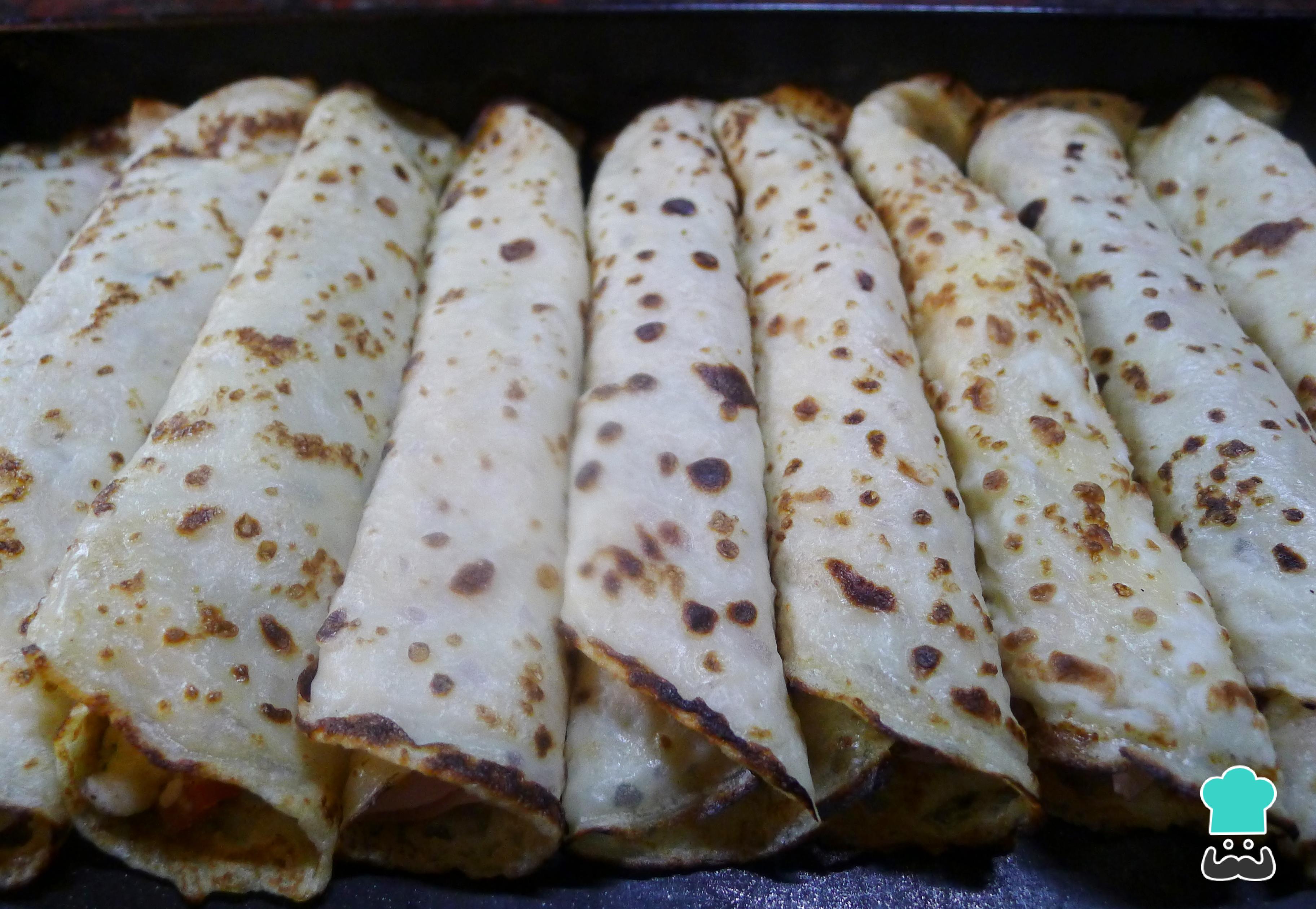 A medida que rellenamos los crepes los vamos colocando sobre una placa para horno y los calentamos por unos minutos para derretir el queso.