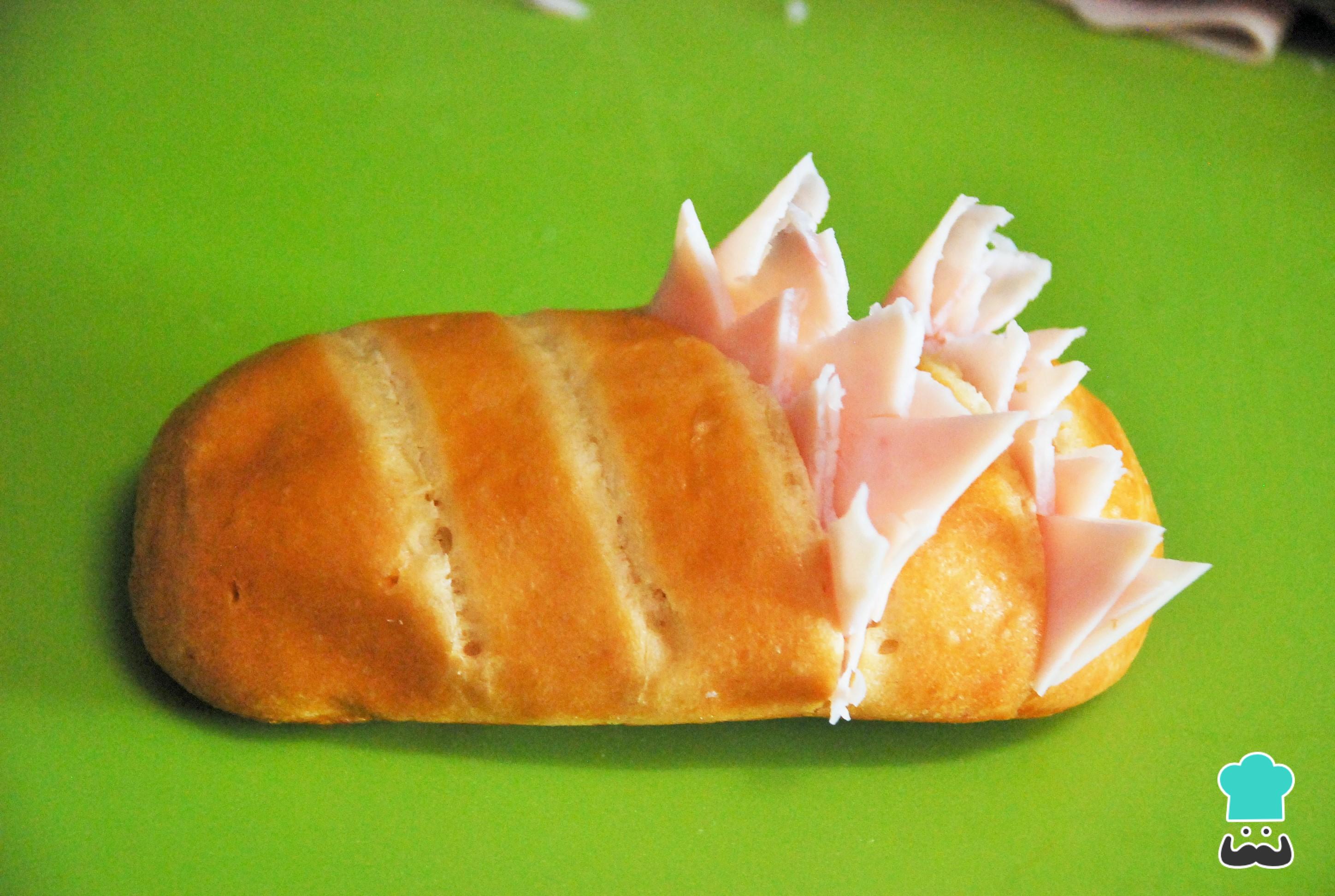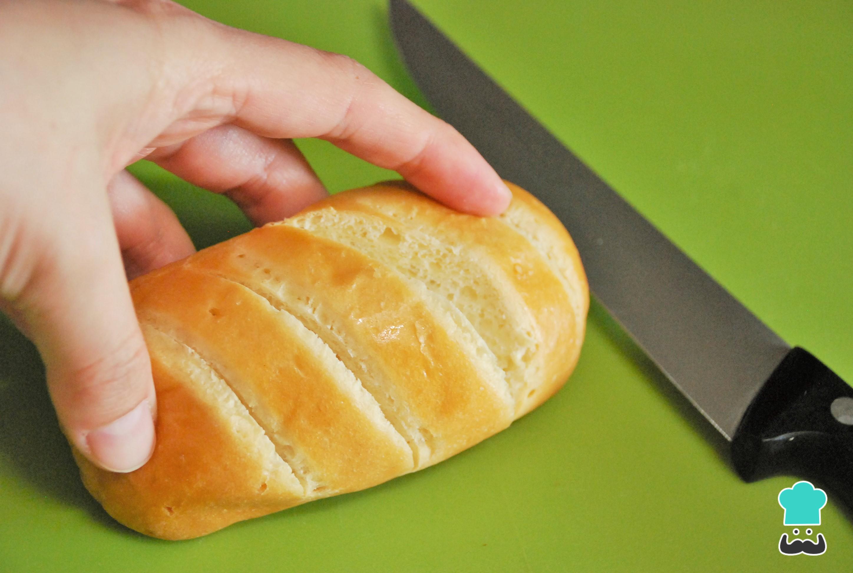 Corta hendiduras horizontales en el pan. Si usas un pan de leche como el de la foto, sólo tendrás que abrir las marcas que ya trae el propio pan.
