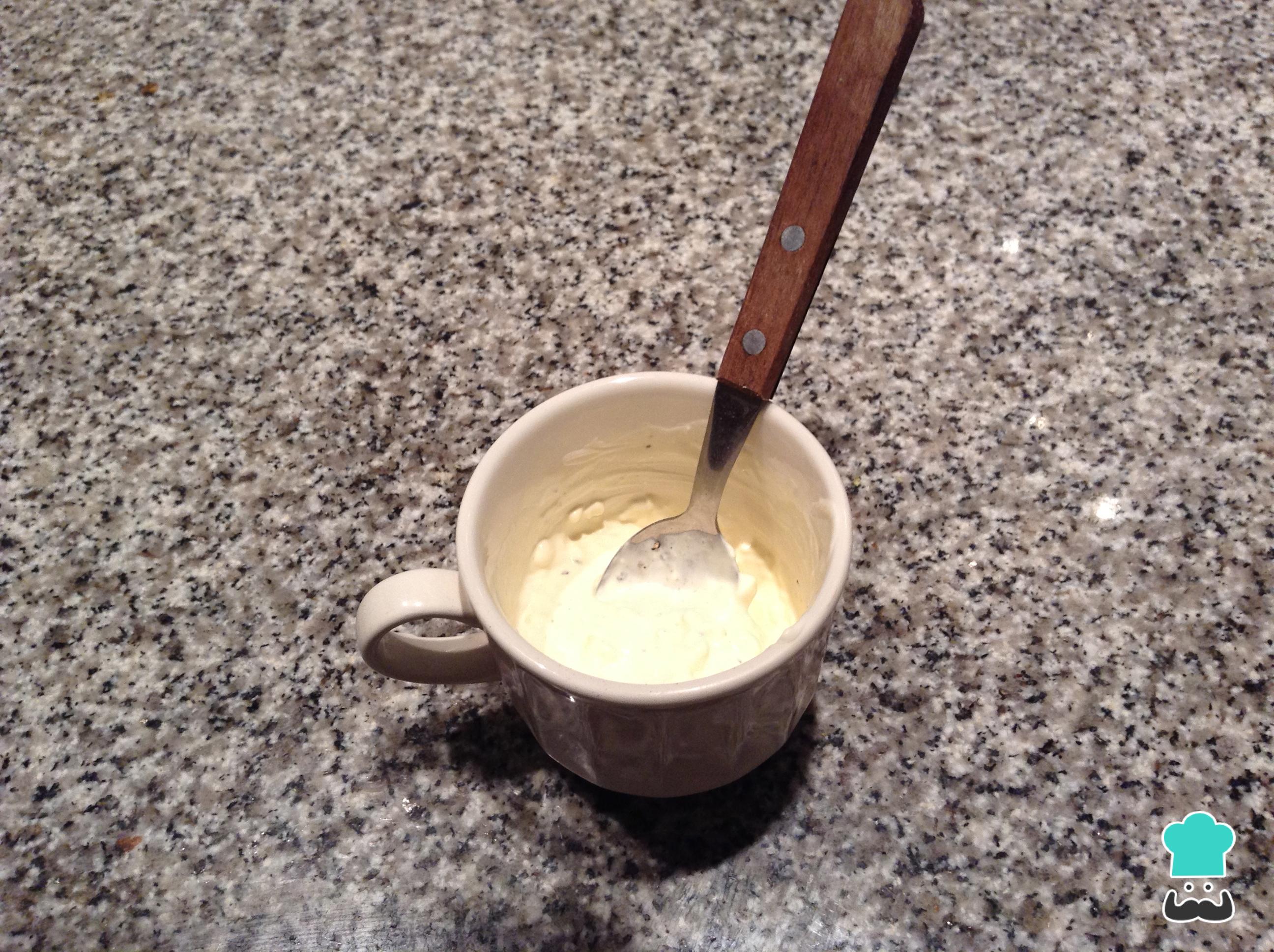 Mezclar la crema de leche y el queso crema en una taza pequeña hasta que quede homogénea esta mezcla.