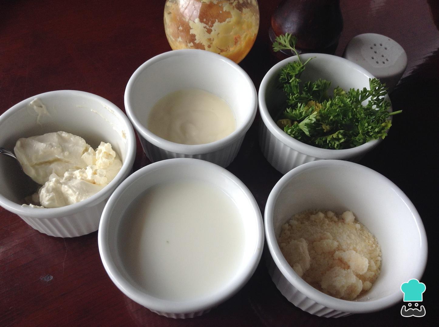 El primer paso para realizar esta receta de dip de parmesano es prealistar los ingredientes.