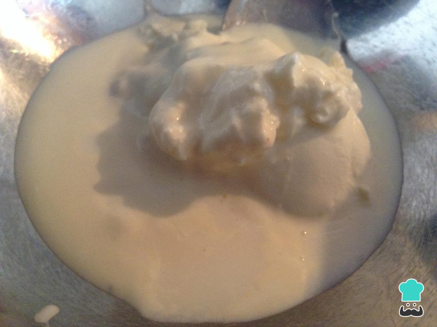 En un bol adiciona la crema de leche, el queso crema y la leche. Mezcla muy bien hasta que se integren todos los ingredientes. Lo ideal es obtener una consistencia liquida y espesa al mismo tiempo.
