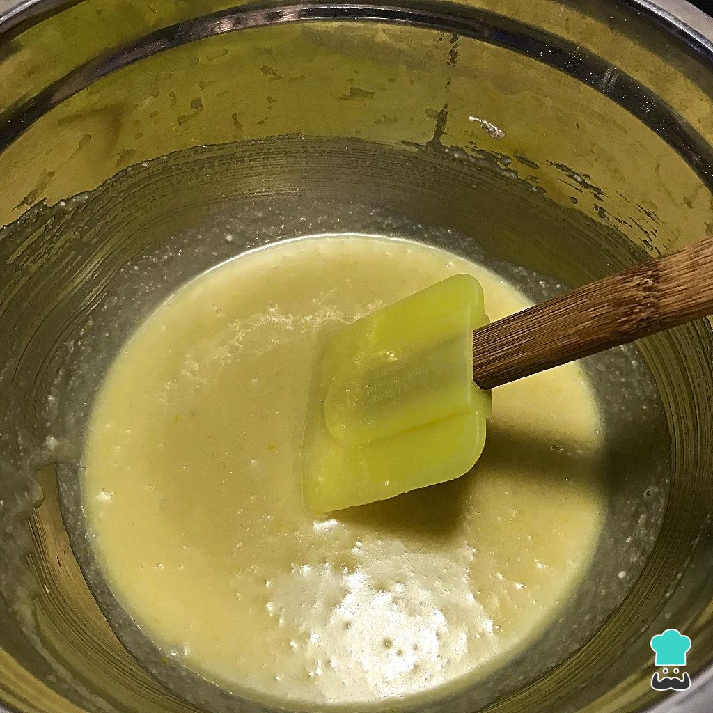 Mezclamos los ingredientes secos con los húmedos y removemos bien hasta conseguir una masa uniforme. Verás que esta masa de donas sin gluten es similar a una masa de pastel o de bizcocho, por eso no es compacta ni moldeable como pasa con la tradicional.