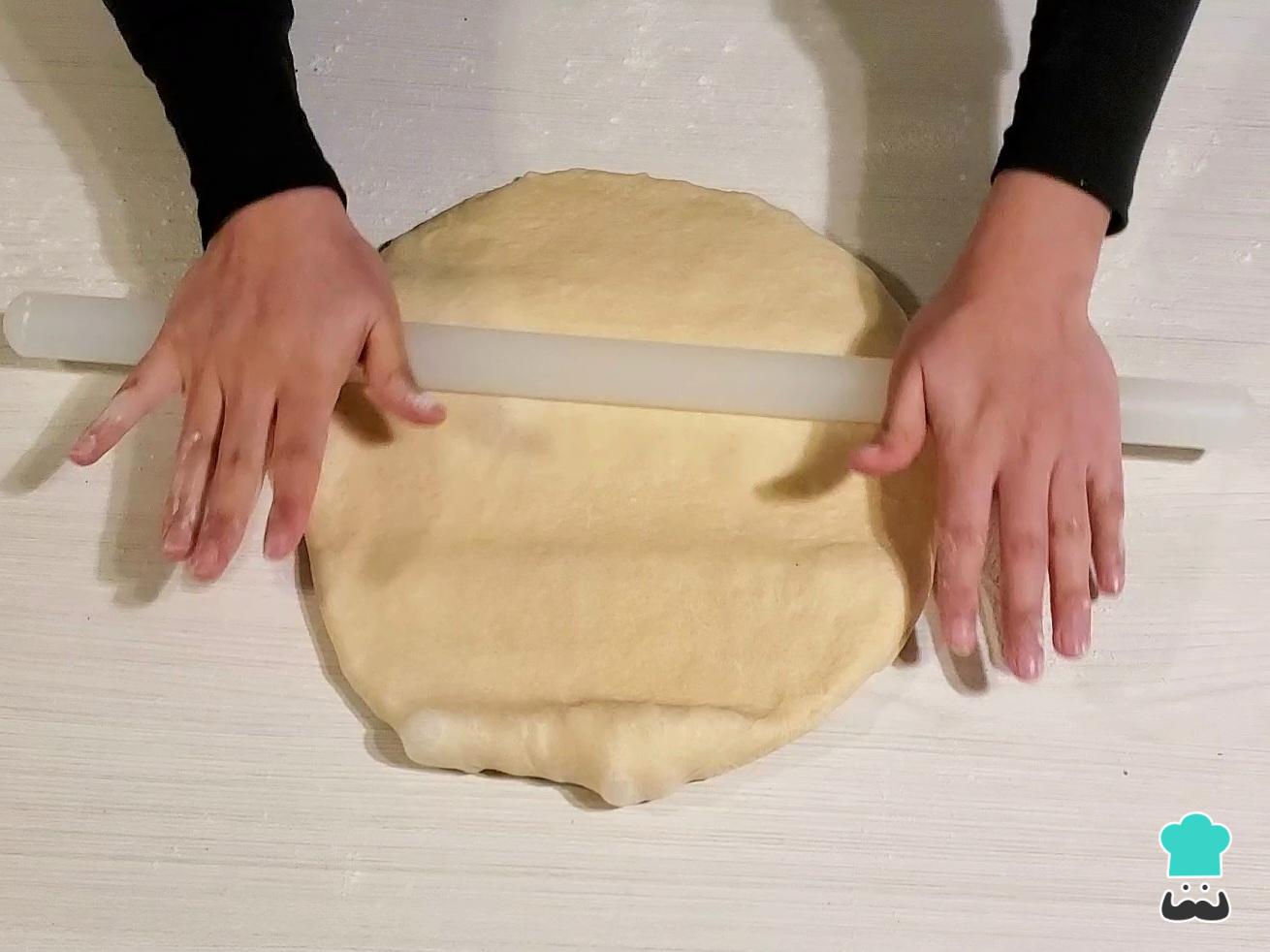 Retira la masa del bowl, desínflala y estírala con un rodillo hasta que tenga menos de medio centimetro de grosor.