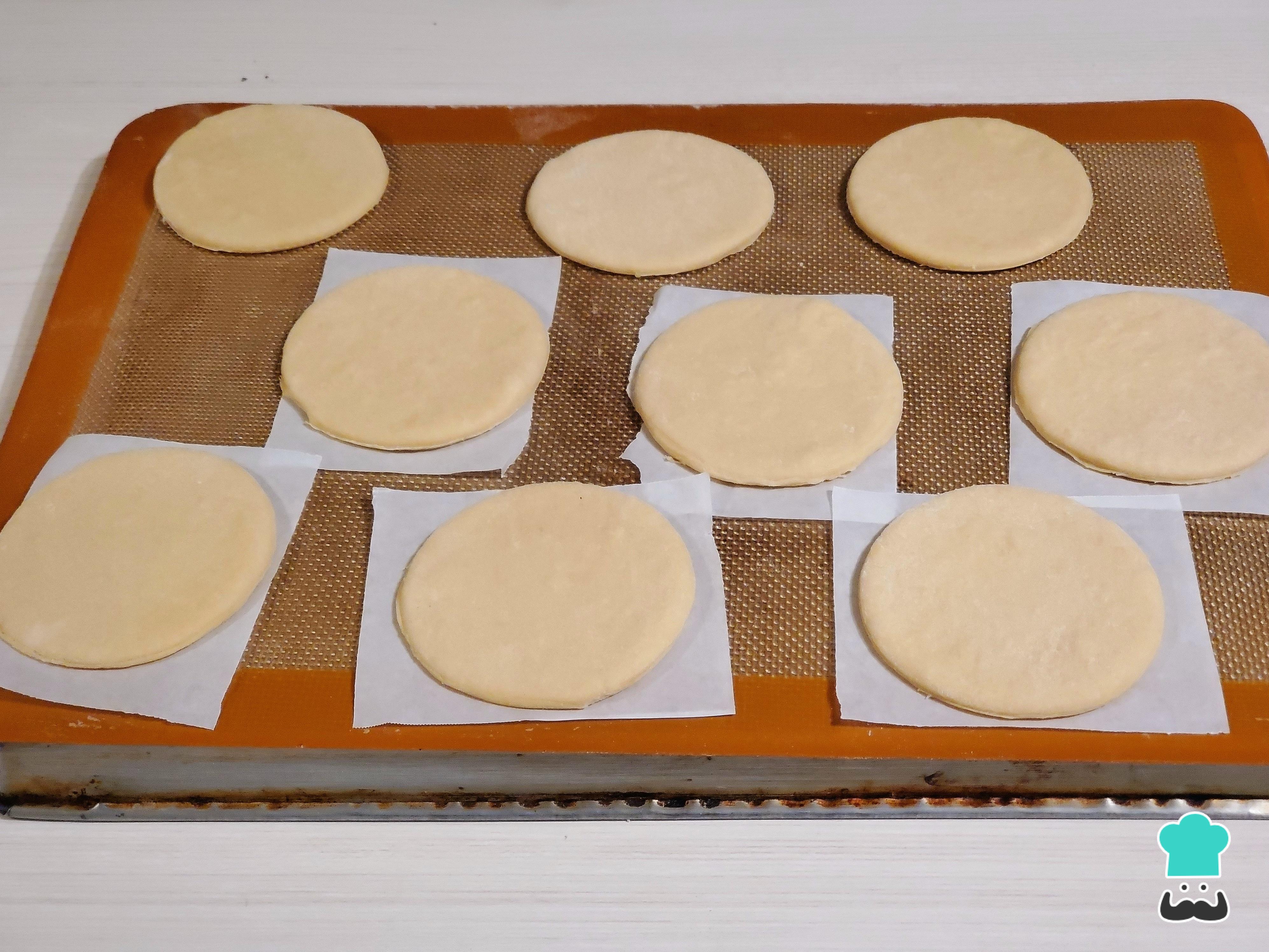 Corta la masa con un aro de 8.5 centímetros y, si te gustan las donas con hueco, corta el centro con un aro de 2.5 centímetros.