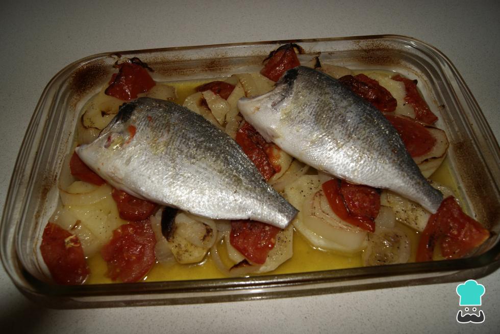 Cómo hacer Dorada al horno con patatas y cebolla: