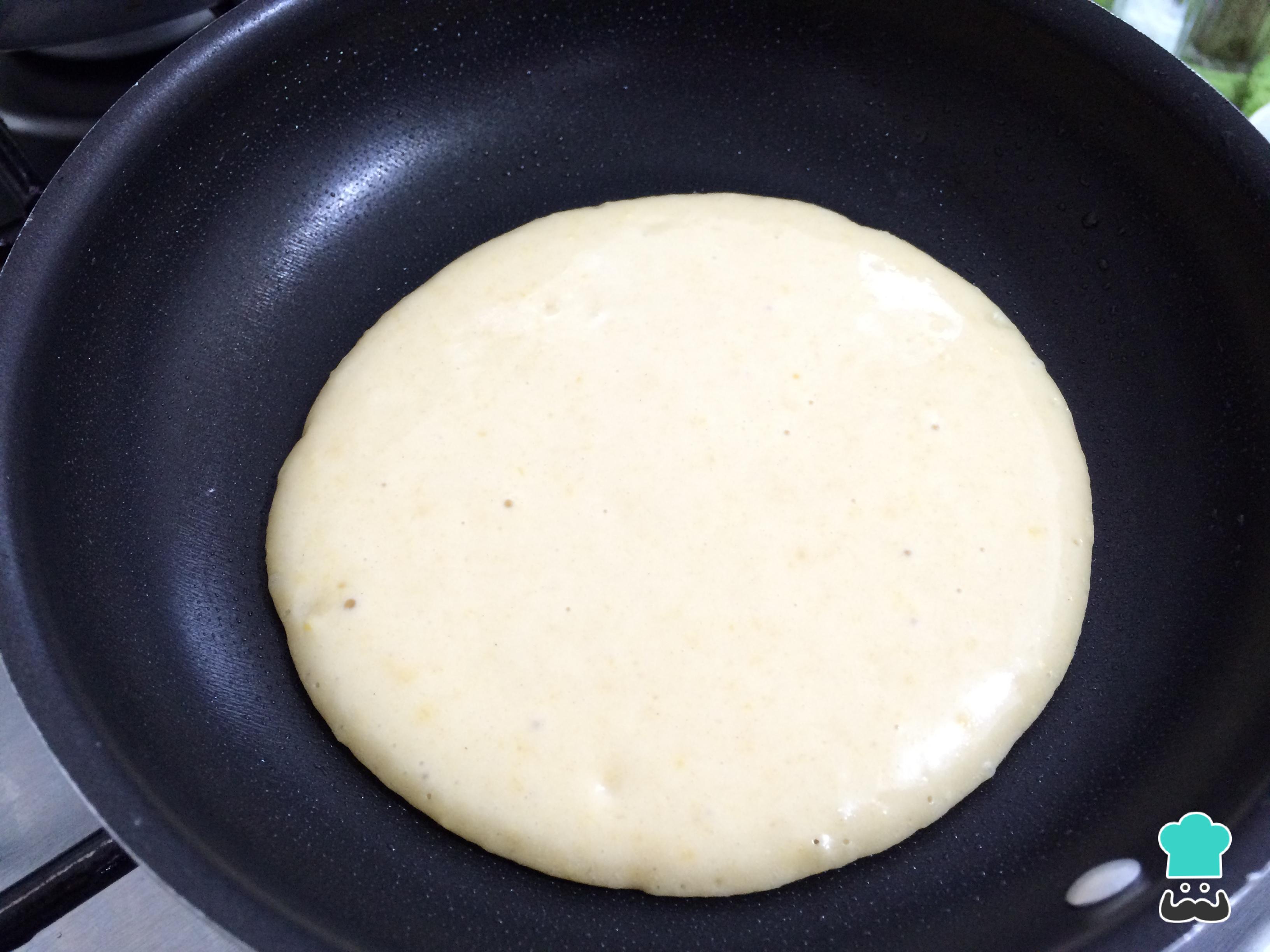En una sartén antiadherente, agregar un poco de la mezcla y cocinar por ambos lados durante 5 minutos, hasta que esté dorado y esponjoso el bizcocho.