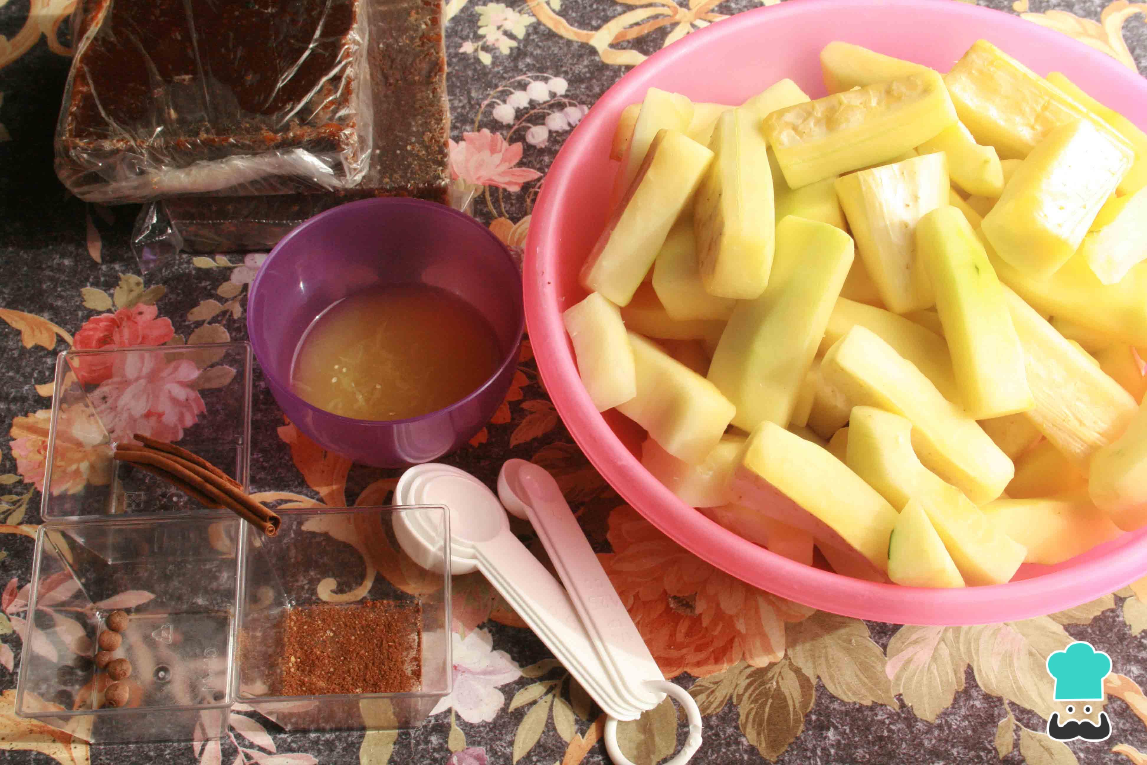 Cuando tengas la lechosa escurrida, dispón el resto de los ingredientes y utensilios para preparar nuestro dulce de lechosa con papelón.