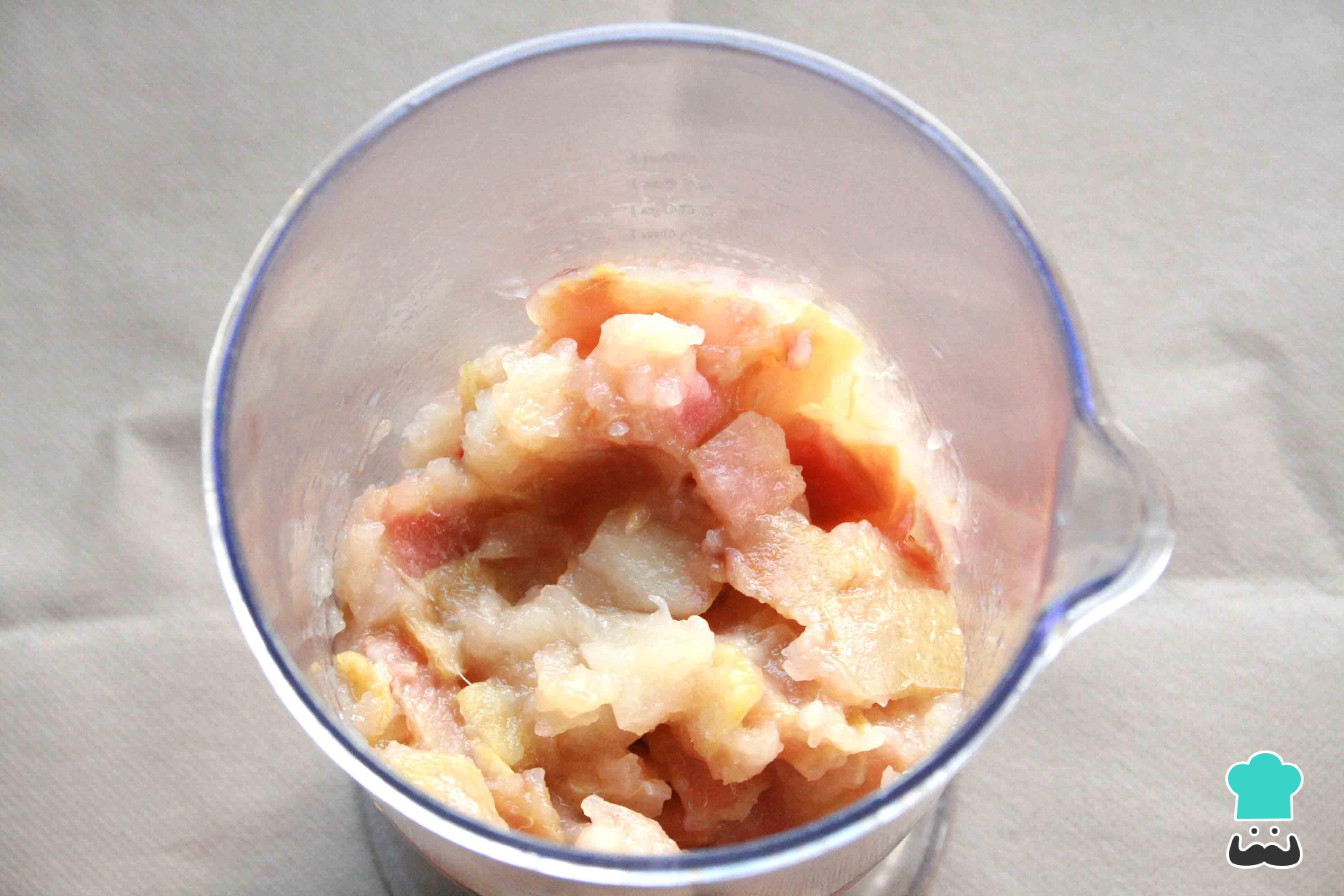 Agrega la gelatina diluida al puré de manzana reservado. Mezcla hasta que todo quede integrado por completo.