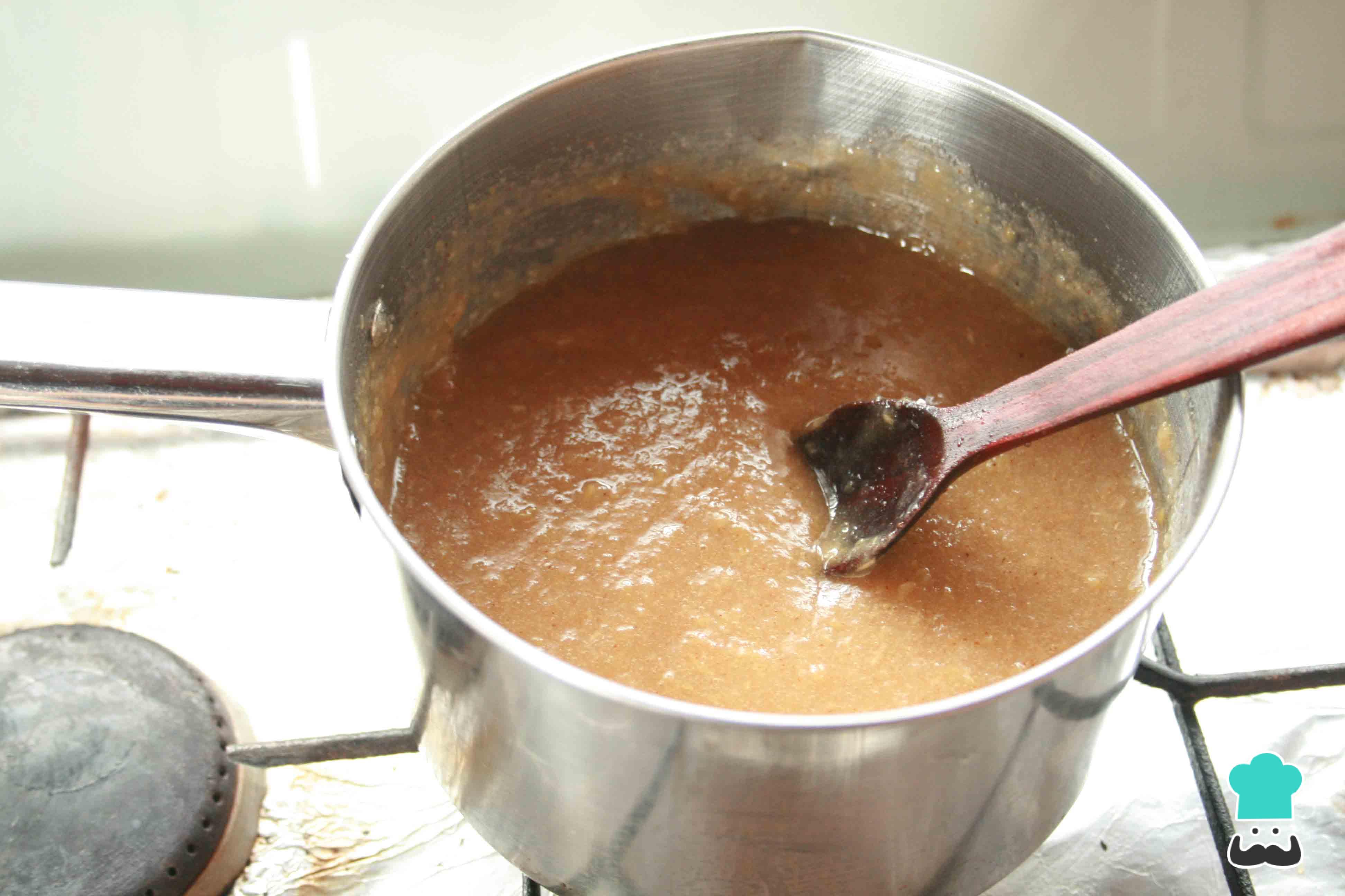 Elimina la canela y tritura la preparación de manzana con cualquier ayudante de cocina que tengas a mano. Deposita la mezcla en un recipiente o cazo y reserva.