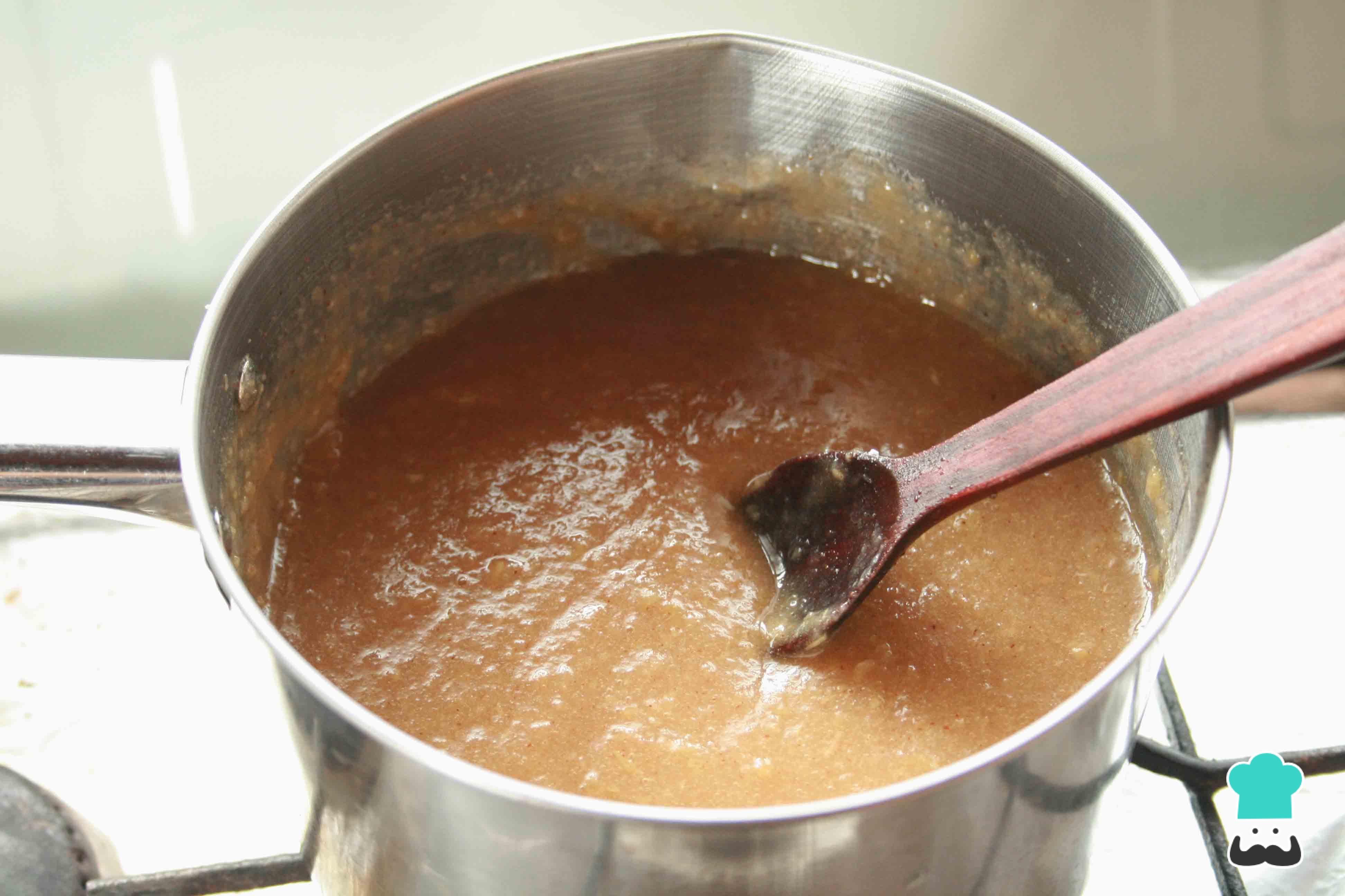 Coloca el puré de manzana en un cazo y agrega otra rama de canela y el resto de las especias. Remueve constantemente hasta finalizar la cocción.