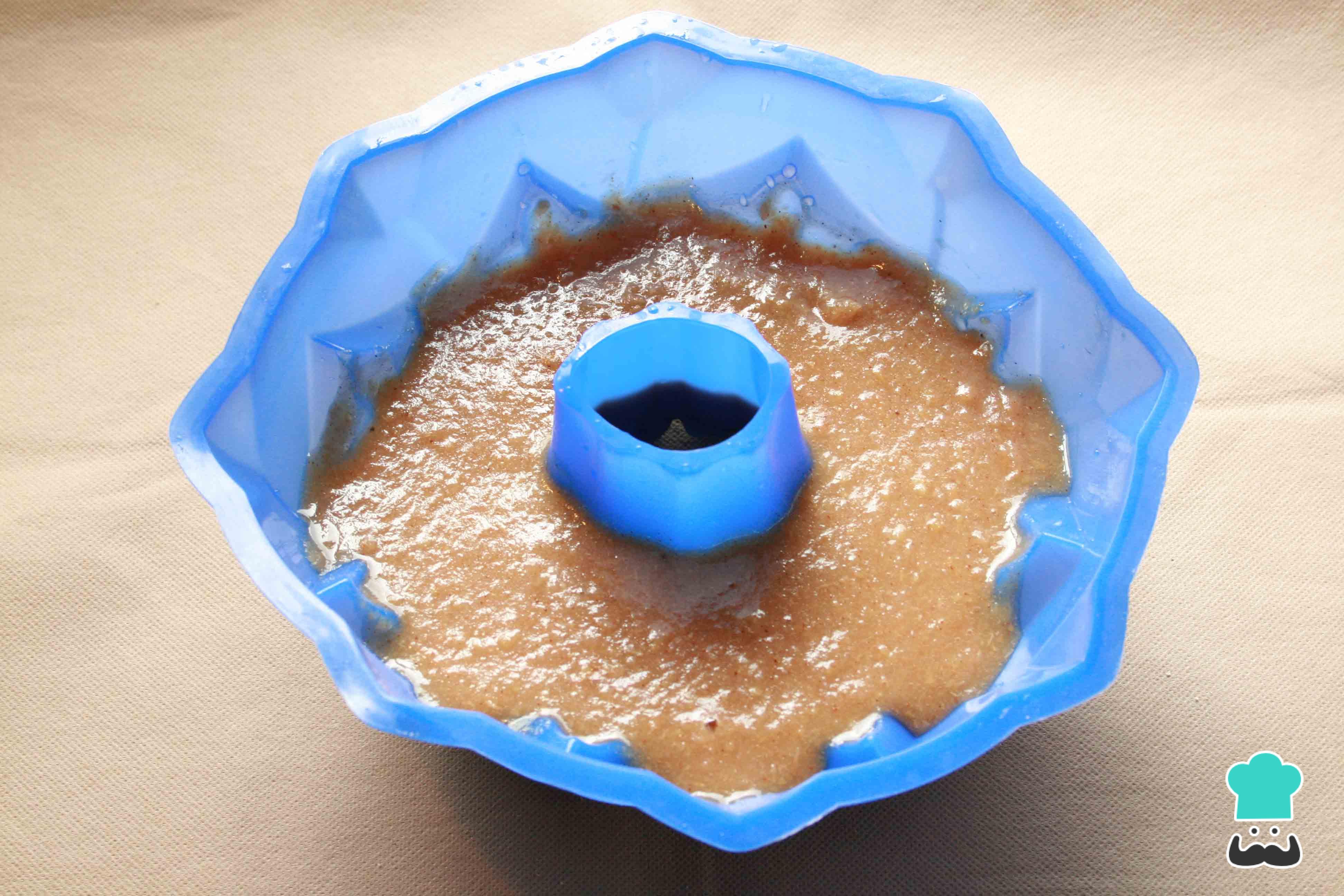 Vierte el dulce de manzana sin azúcar dentro de un molde y refrigera hasta el día siguiente, barnizando el recipiente con aceite previamente. Te recomiendo utilizar un molde de silicona, el cual facilita el posterior proceso de desmoldado y te proporcionará más opciones de presentación. Si quieres utilizar un molde de plástico, vidrio o metal, recuerda forrarlo con papel film previamente. Después de verter la mezcla, cubre el recipiente también con papel film y refrigera.