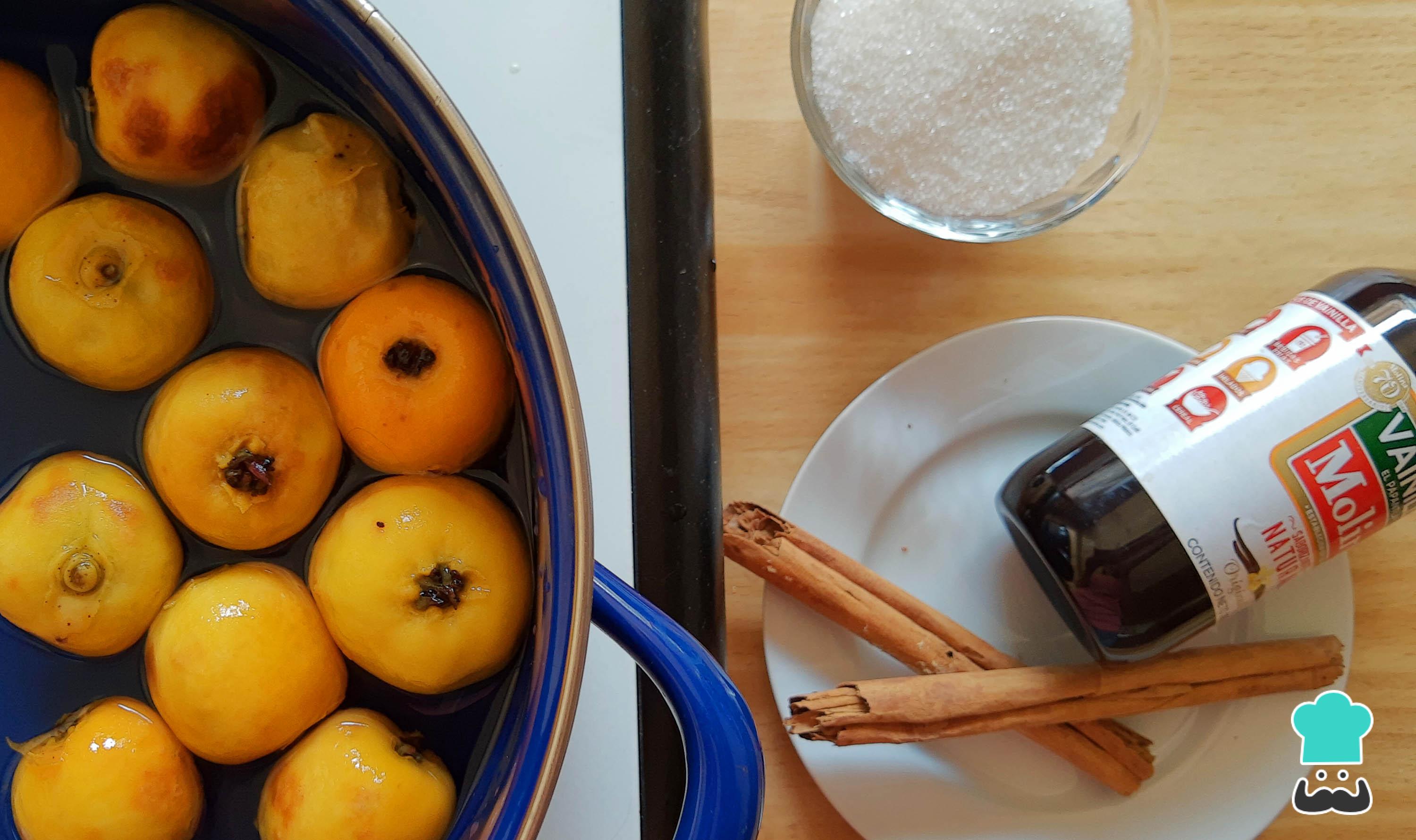 Pon a hervir 1 litro de agua en otra olla, añade el azúcar, la ramita de canela, la cucharadita de vainilla y los tejocotes previamente pelados y cocina a fuego medio durante 40 minutos. Mueve constantemente para que el dulce de tejocote no se queme. Pasado el tiempo de cocción, deja enfriar y reposar la preparación durante 2 horas para que se asienten los sabores.
