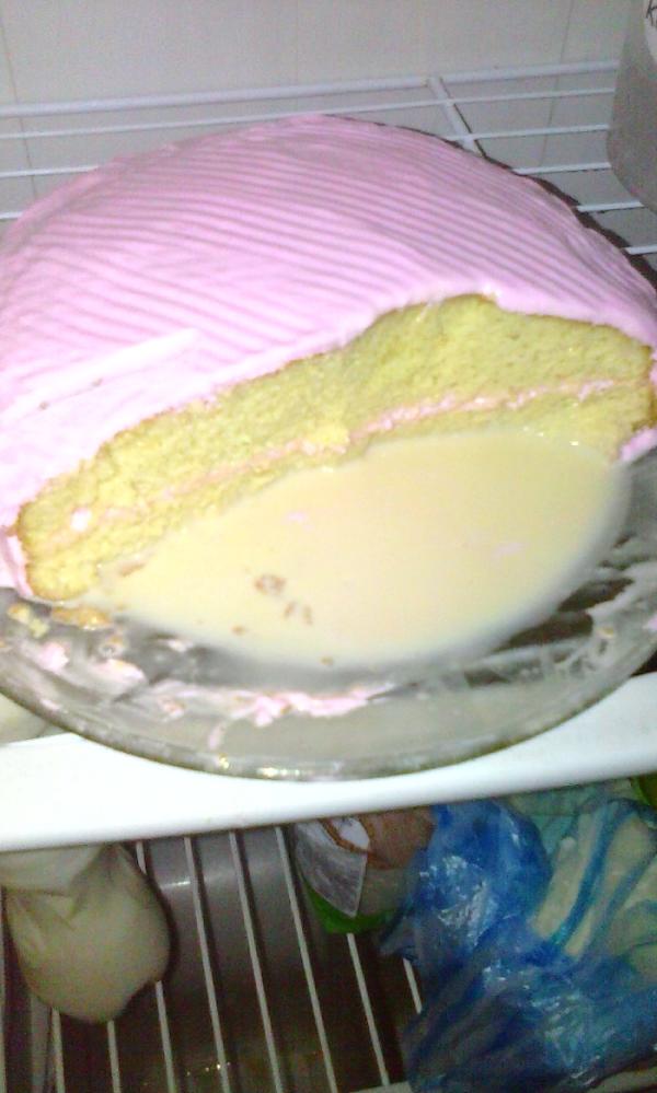 Cuando el bizcocho esté listo, retíralo del horno y todavía caliente báñalo con la mezcla de tres leches. Para mejor resultado, la preparación debe estar a temperatura ambiente, puesto que si está frías el molde podría dañarse. Cuando la viertas hazlo poco a poco para evitar que se corte y adquiera un mal sabor.