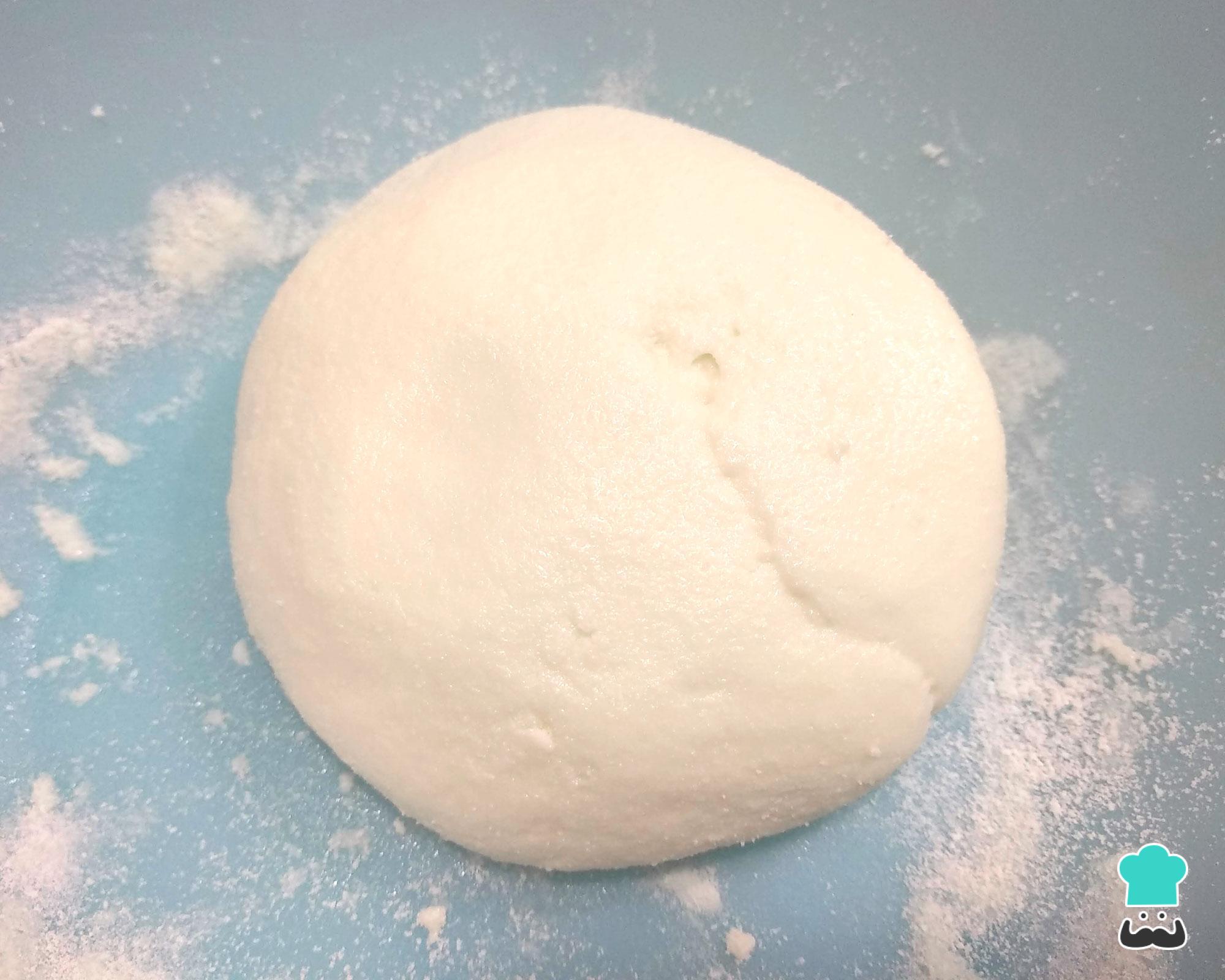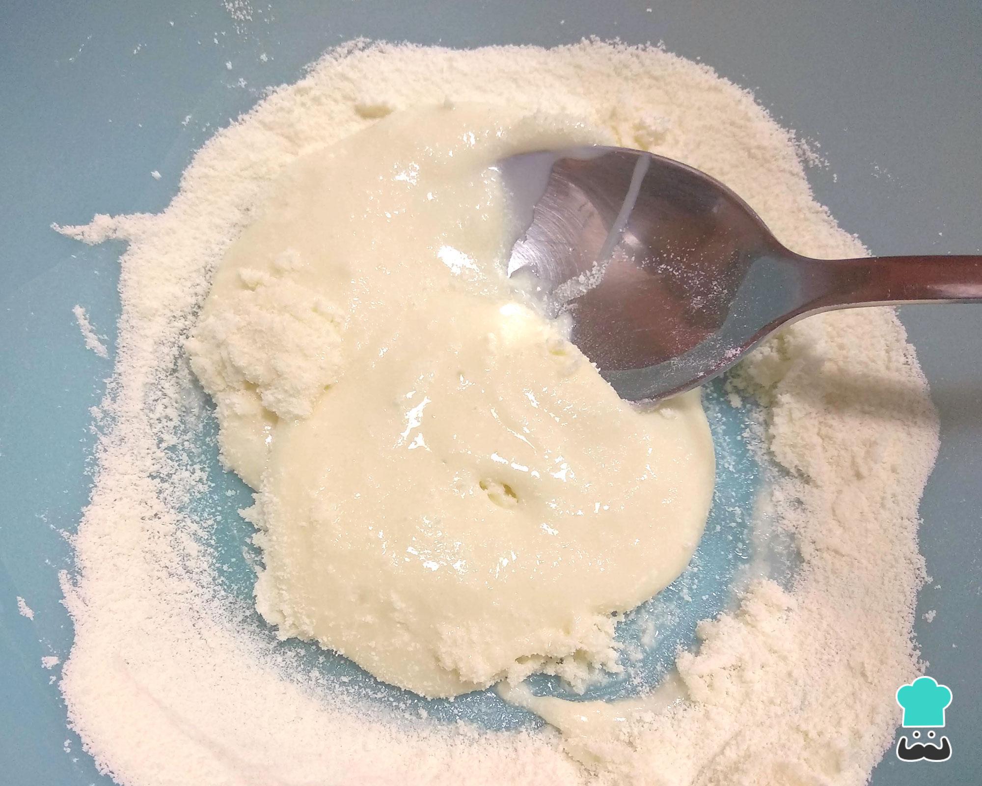 Cuando la mezcla de leche condensada y leche en polvo comience a espesarse, mézclala con las manos hasta obtener una pasta fácil de moldear como la de la imagen.