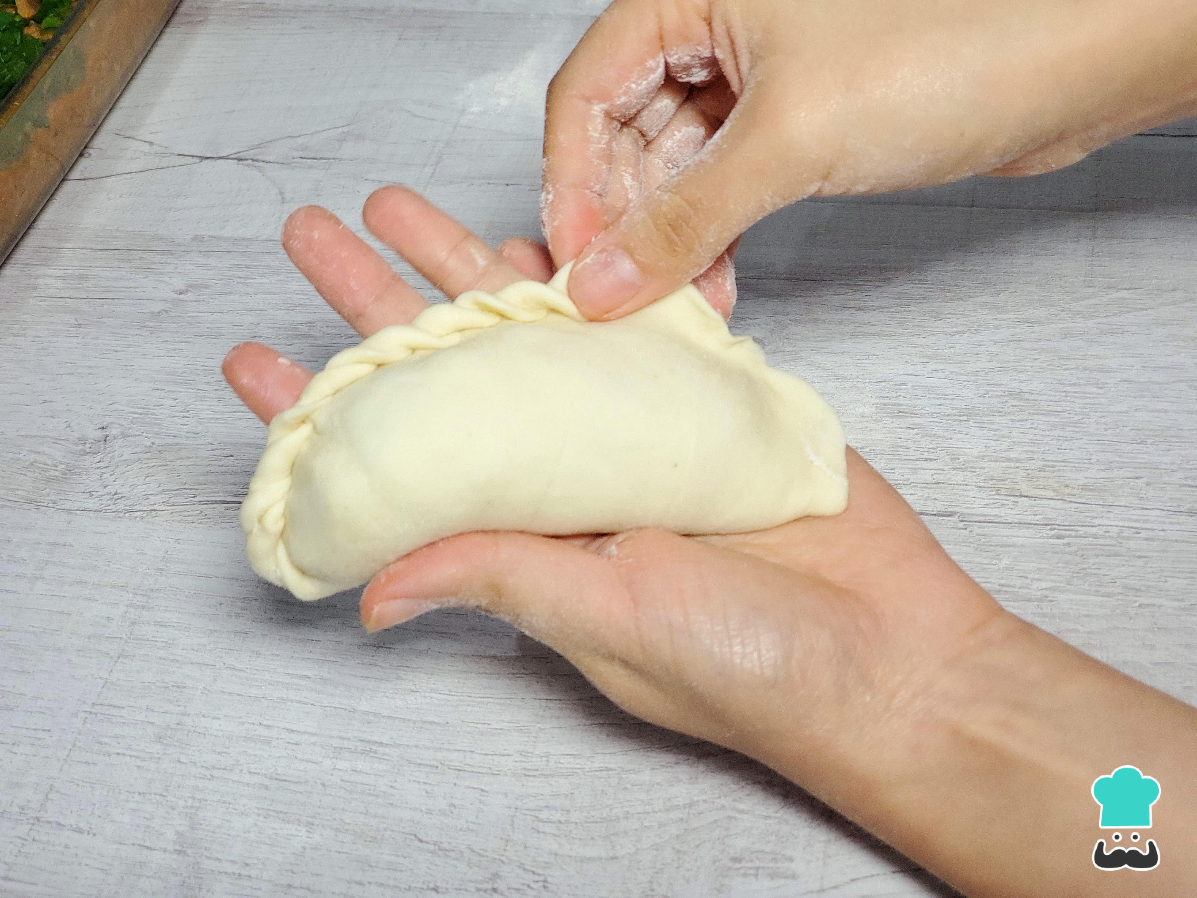Para un acabado tradicional, retuerce el borde formando el clásico repulgue tucumano.