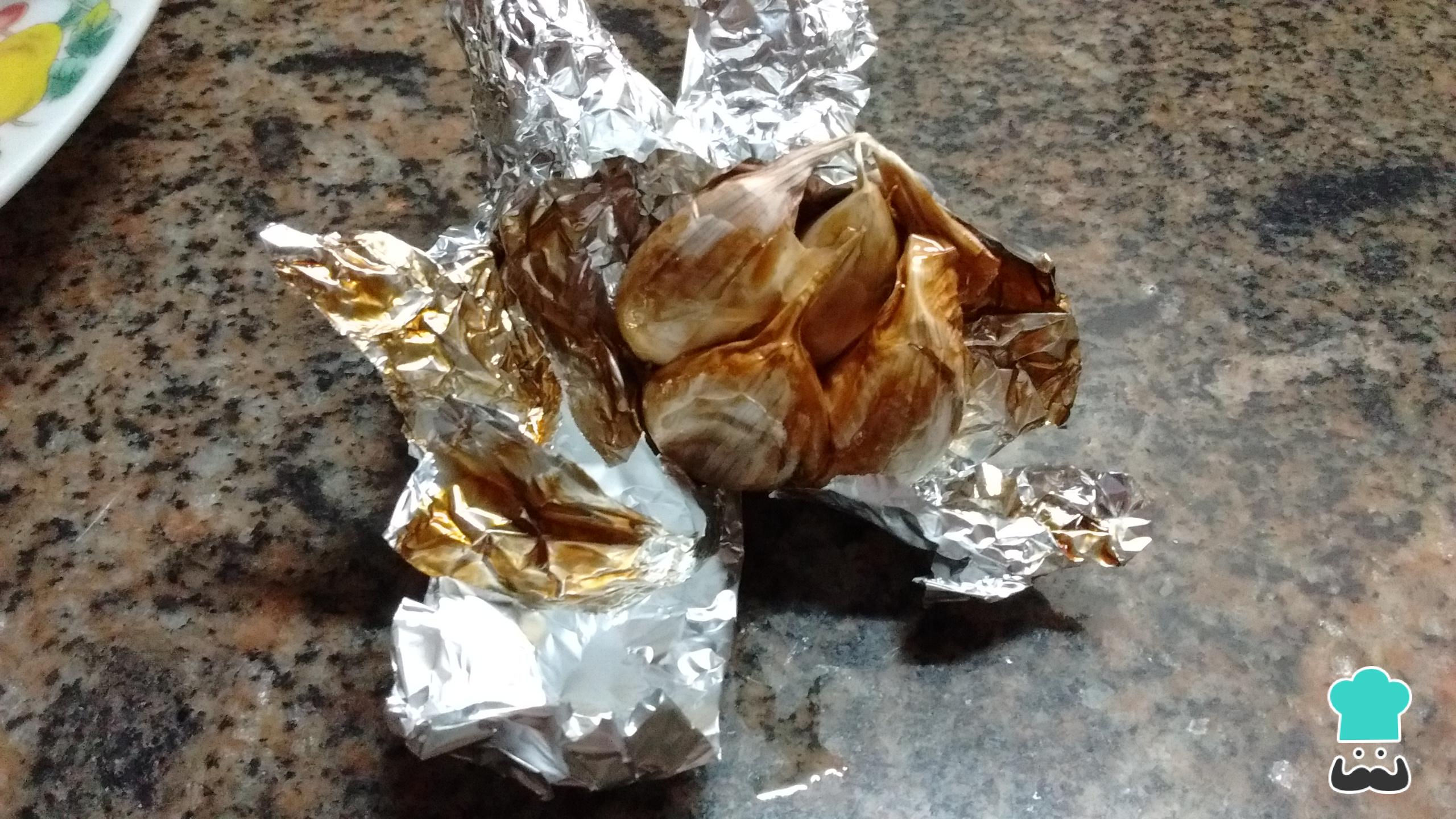 Repite el mismo proceso con los dientes de ajo, es decir, envuélvelos en aluminio y cocínalos el mismo tiempo que las berenjenas. Puedes usar la cantidad descrita en los ingredientes o bien cocinar una cabeza entera y guardarlos para otras preparaciones. El sabor es delicioso y suave, respecto a su uso en crudo.