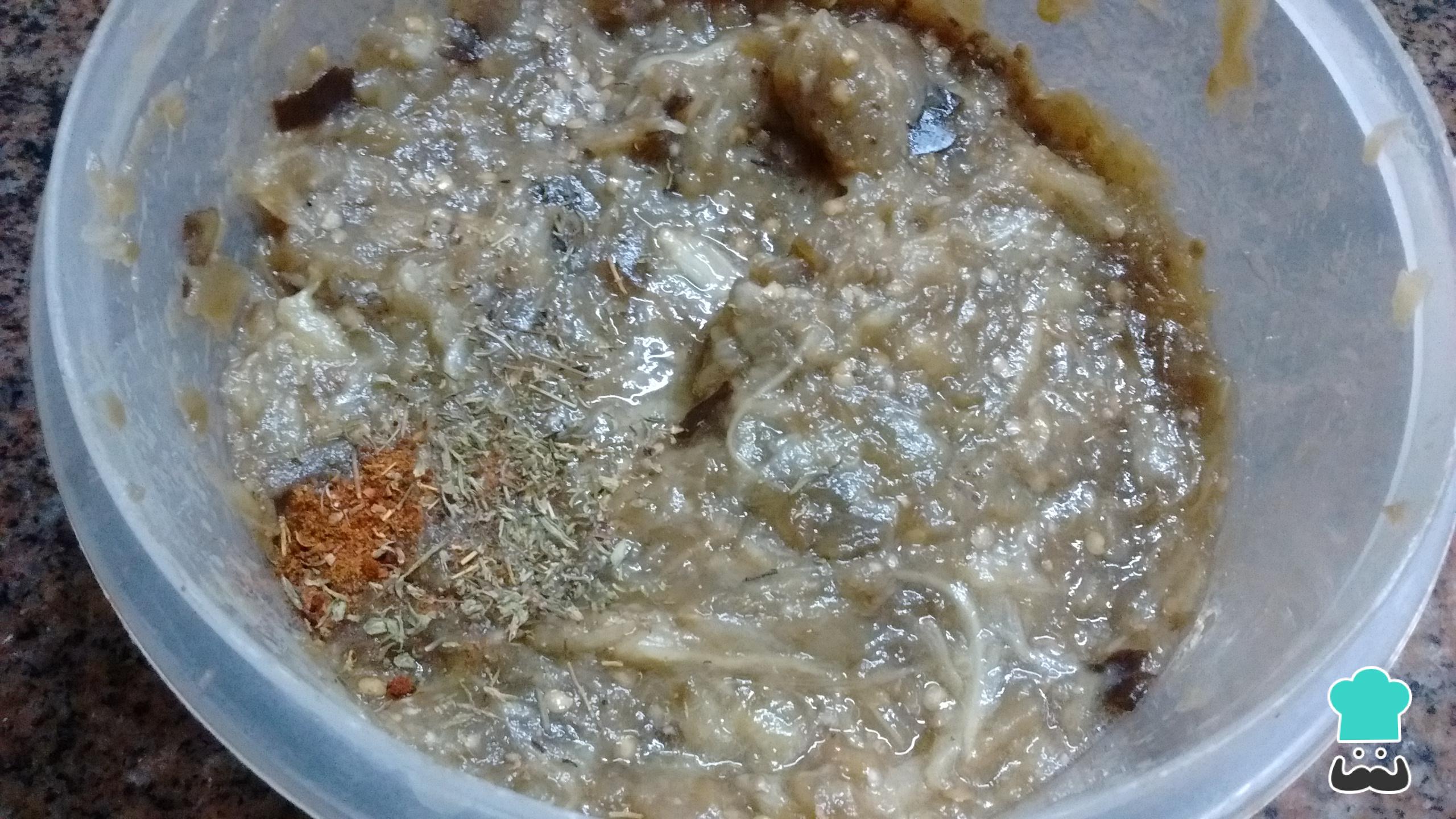 Cuando los vegetales estén cocidos y tibios, para no quemarte, abre el aluminio y retira su pulpa, descartando la piel de la berenjena y la cáscara del ajo. Añade el puré de los dientes de ajo de a poco, para que se ajuste a tu gusto. Luego, condimenta con el tomillo y el ají molido o chipotle, si deseas darle un toque picante a esta preparación.