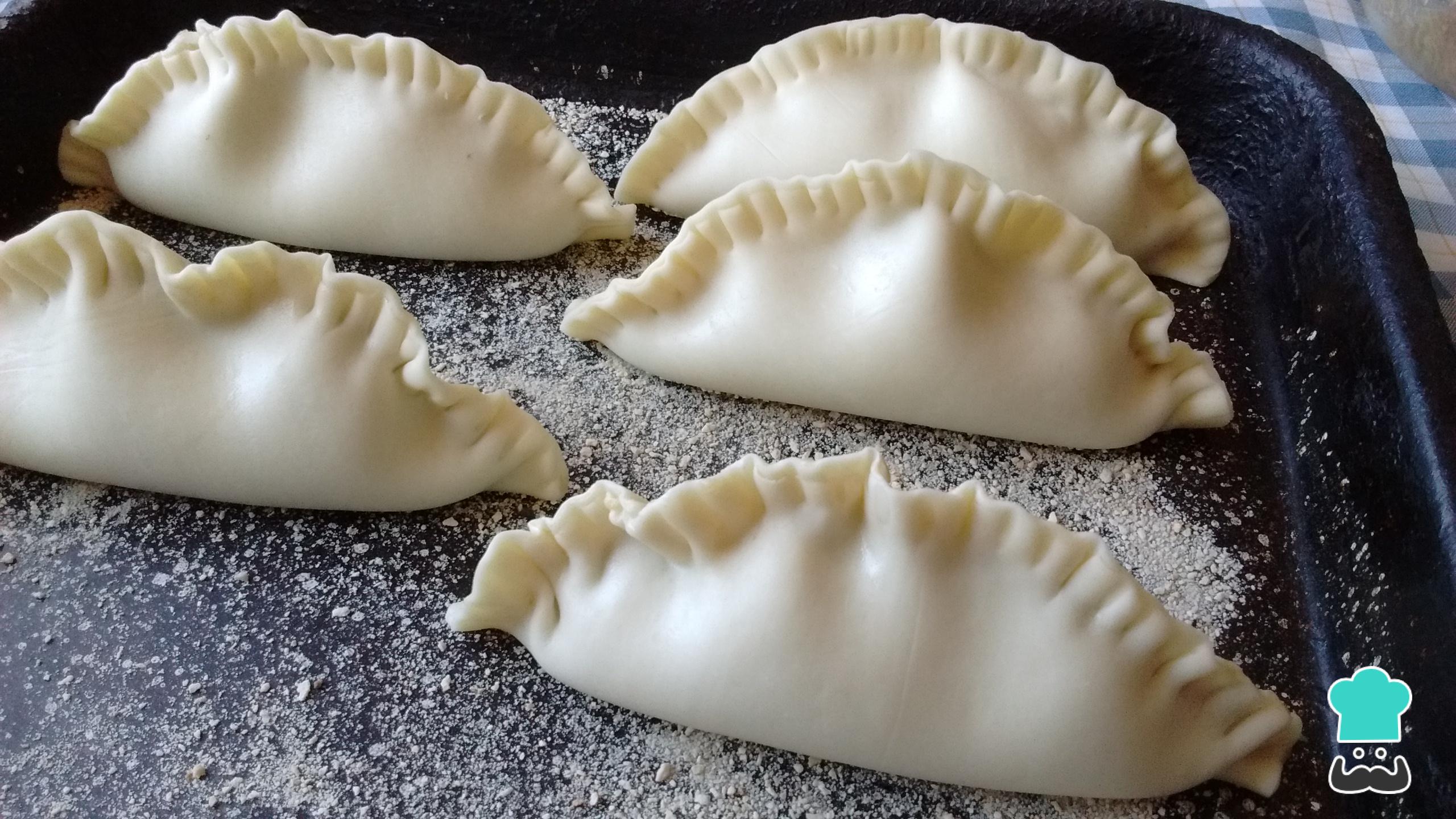 A medida que tengas tus empanadas listas, disponlas en una asadera cubierta con pan rallado si deseas cocinarlas en el horno.