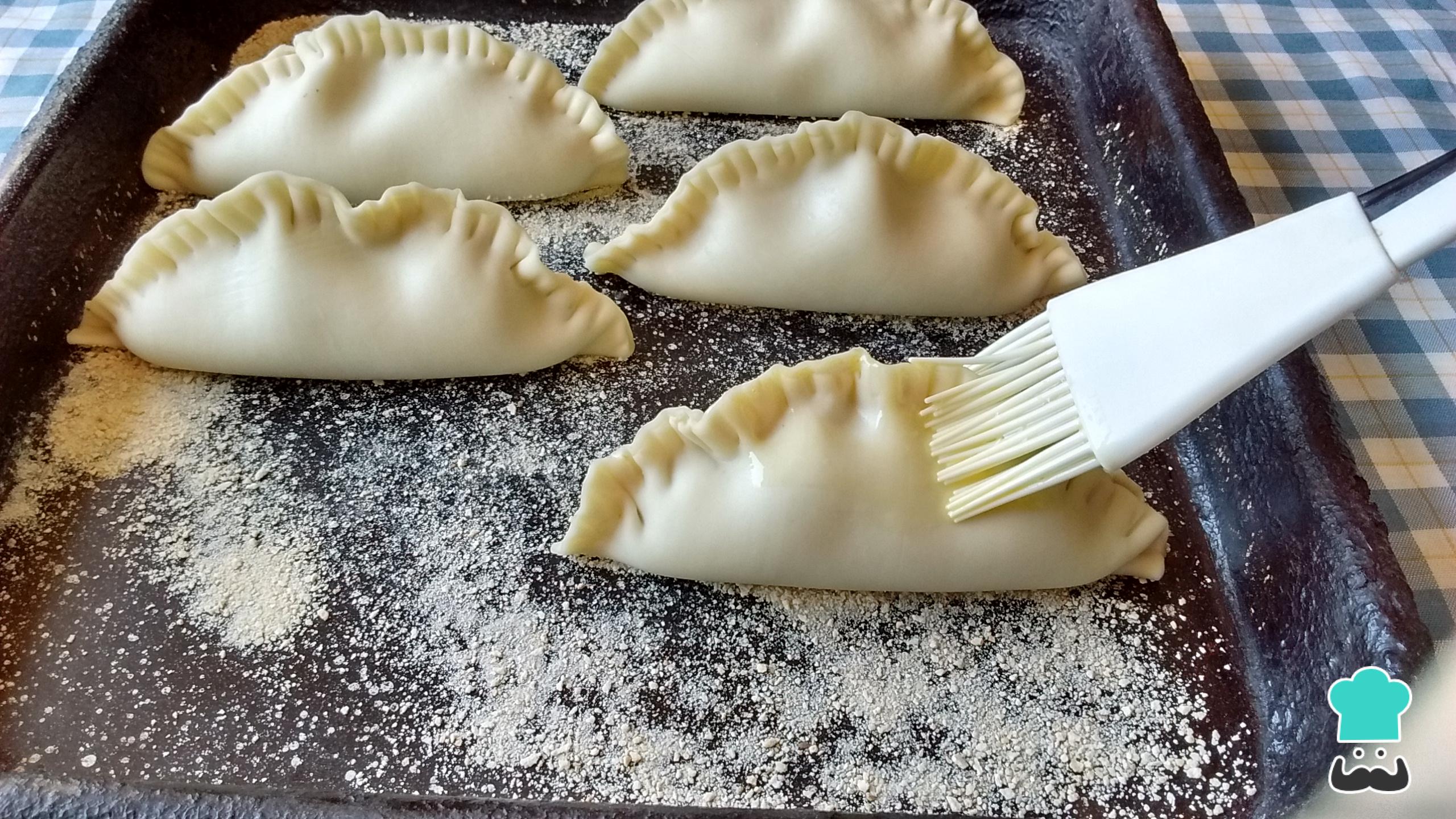 Una vez cerradas las empanadas de berenjenas, hazles un repulgue o una decoración con el tenedor, la cual ayudará a sellar mejor los bordes y que no pierdas el relleno durante la cocción.