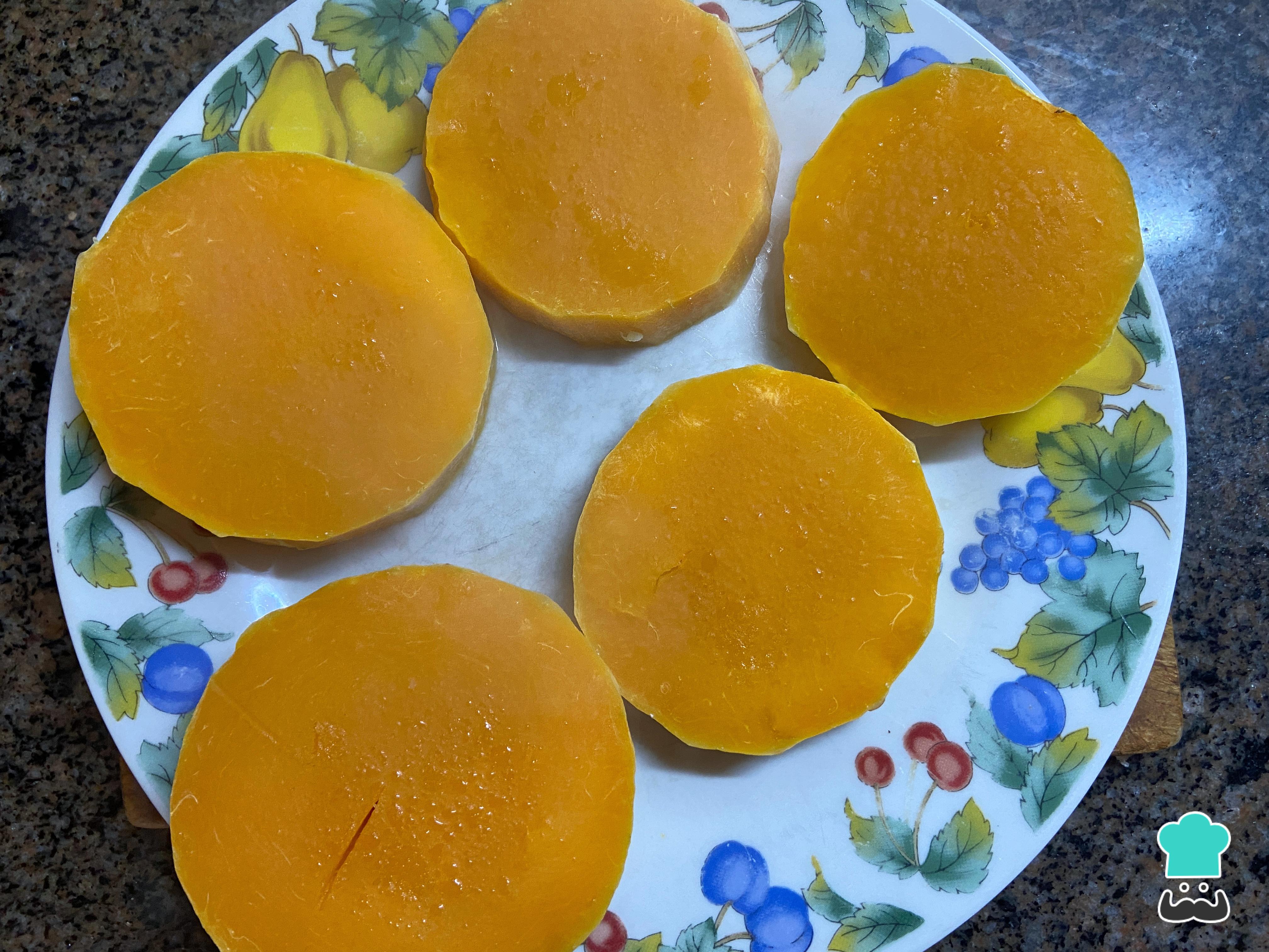 Para empezar con la receta de las empanadas de calabaza y choclo, primero cocina la calabaza durante 6 minutos. A continuación, proporciona la vuelta y cocina 6 minutos más.