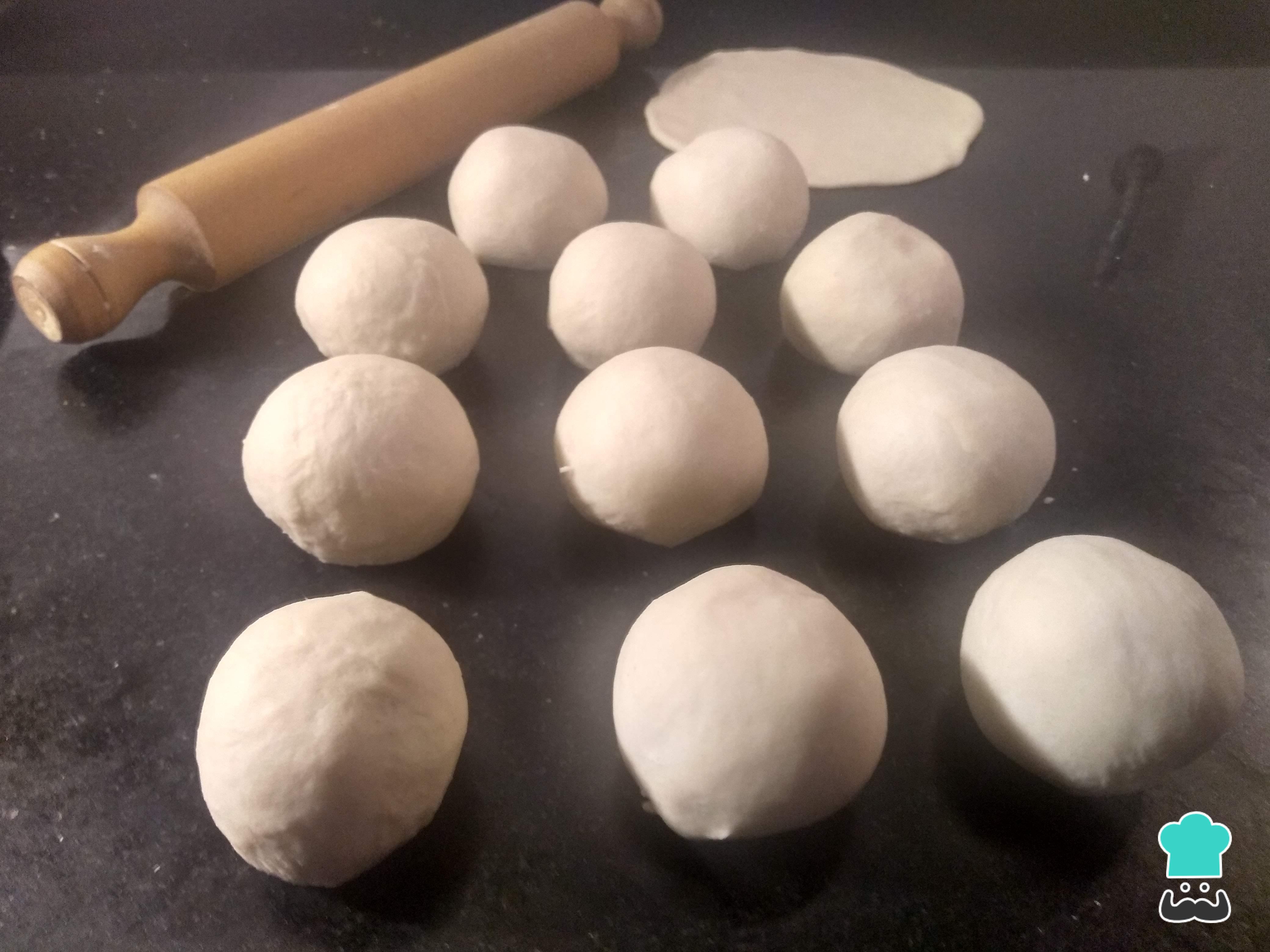 Retira el film que cubre la masa y forma pequeñas bolas del tamaño de una pelota de golf.