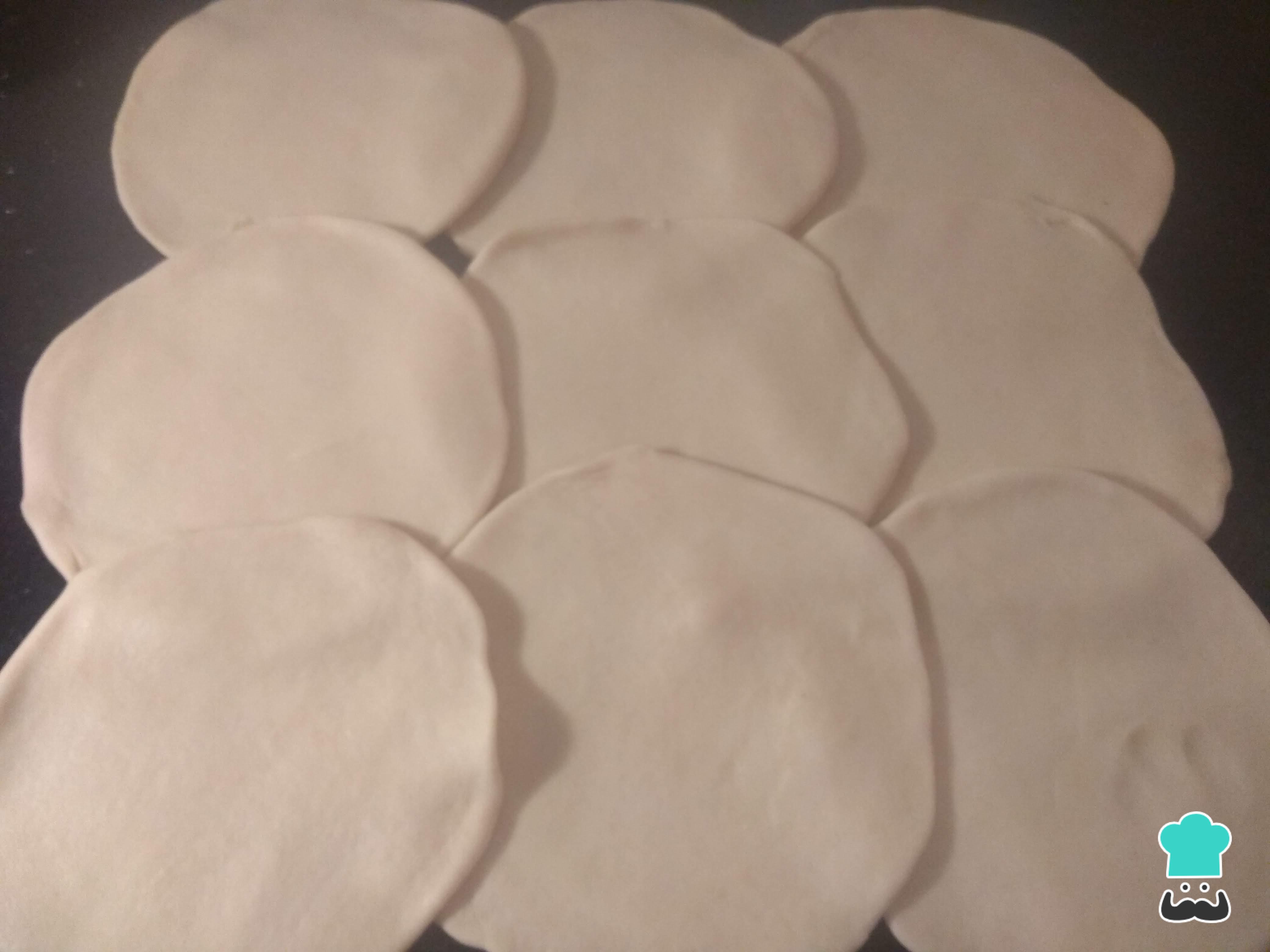 Para que la masa de las empanadas criollas quede redonda, extiende primero con los dedos y, luego, estira con un rodillo. Al momento de usar el rodillo, deberás estirar, dar un cuarto de vuelta con la masa, estirar otra vez, volver a dar otro cuarto de vuelta y repetir este proceso para ir girando y estirando. Otra forma todavía más sencilla es extender toda la masa con el rodillo y cortar círculos con un molde.