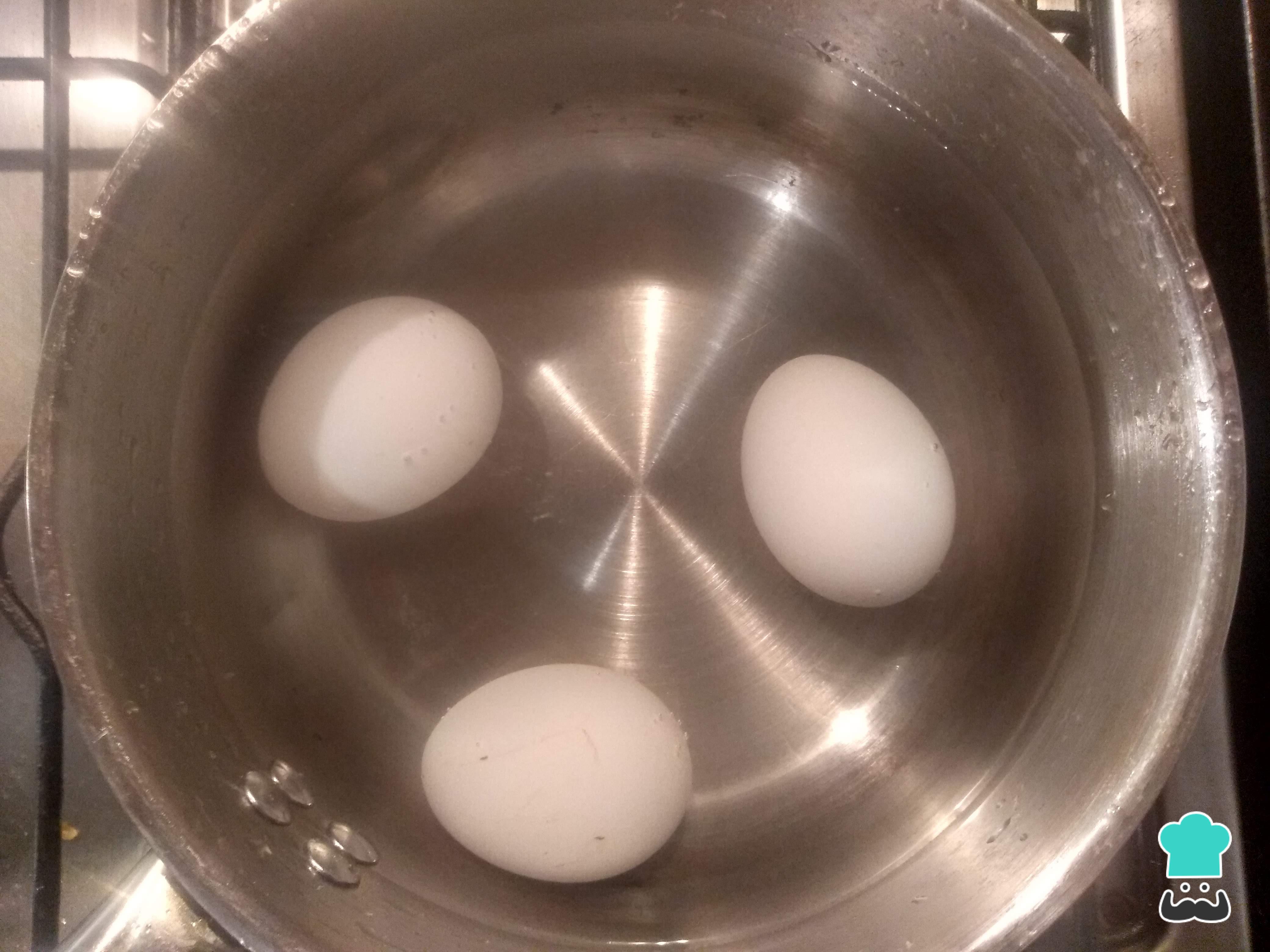 Mientras descansa la masa, aprovecha para hacer el relleno de las empanadas de carne jugosas. Así pues, hierve los huevos en una olla con agua durante 10 minutos.