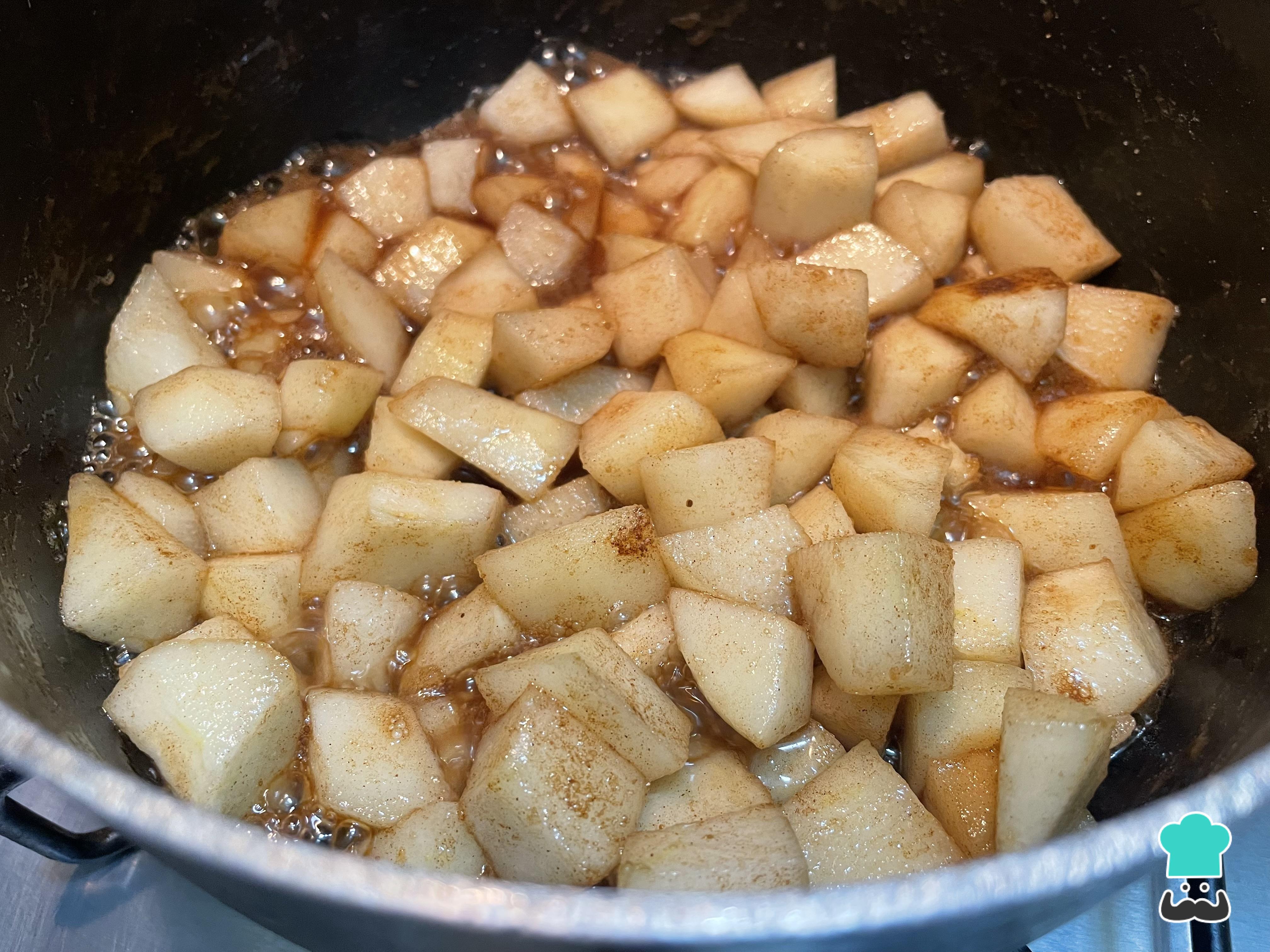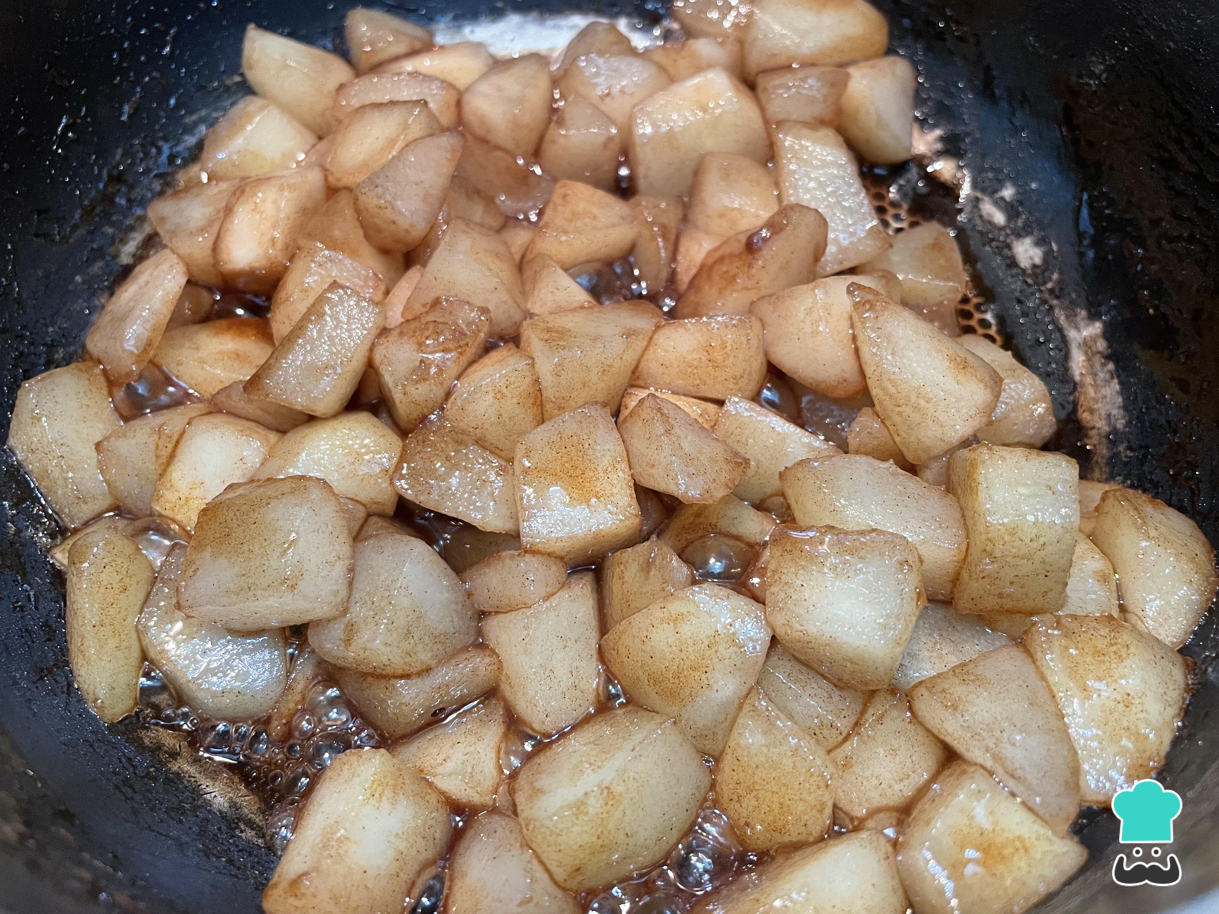 Cocina a fuego bajo sin dejar de revolver, las peras soltarán su jugo y se tornarán más oscuras. Cocina durante unos 20 minutos o hasta que estén bien blanditas.