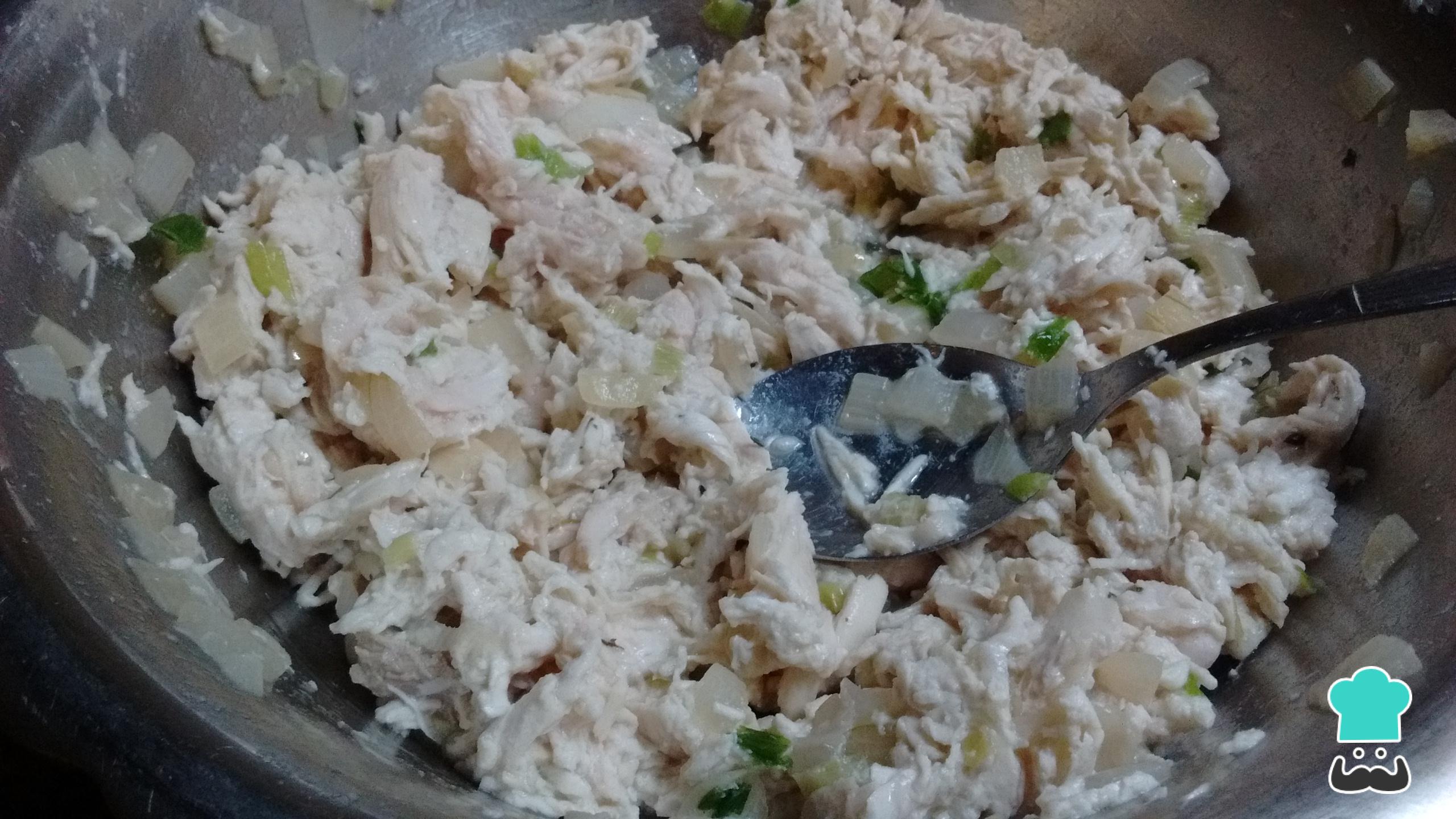 Una vez desmenuzado el pollo, debes mezclarlo con las cebollas salteadas y condimentarlas al gusto con la pimienta y el tomillo. A continuación, agrega el caldo de la cocción de la carne hasta que tu relleno de pollo para empanadas quede húmedo, pero sin llegar a una sopa. Por último, déjalo enfriar en la heladera, si puedes, de un día para otro.