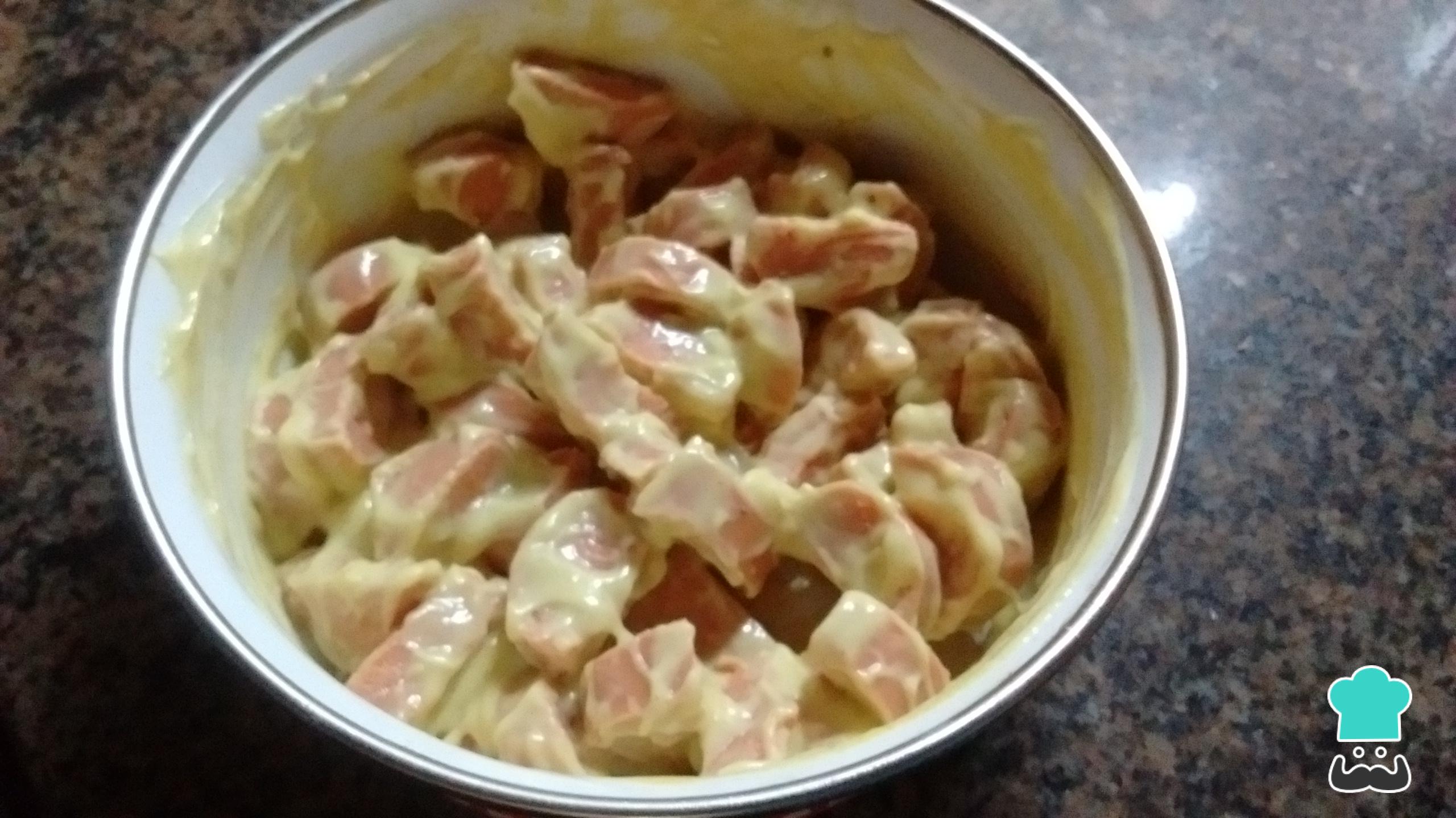 El primer paso para esta receta de empanadas de salchicha consiste en mezclar la mayonesa con el ketchup y la salsa inglesa. Si lo prefieres, puedes usar directamente salsa golf, pero esta opción te permite hacerla a tu gusto y darle el toque distintivo de la salsa inglesa. También puedes reemplazarla por barbacoa, la cual combina perfectamente con las salchichas, al igual que la mostaza, o bien no utilizar ningún tipo de aderezo.