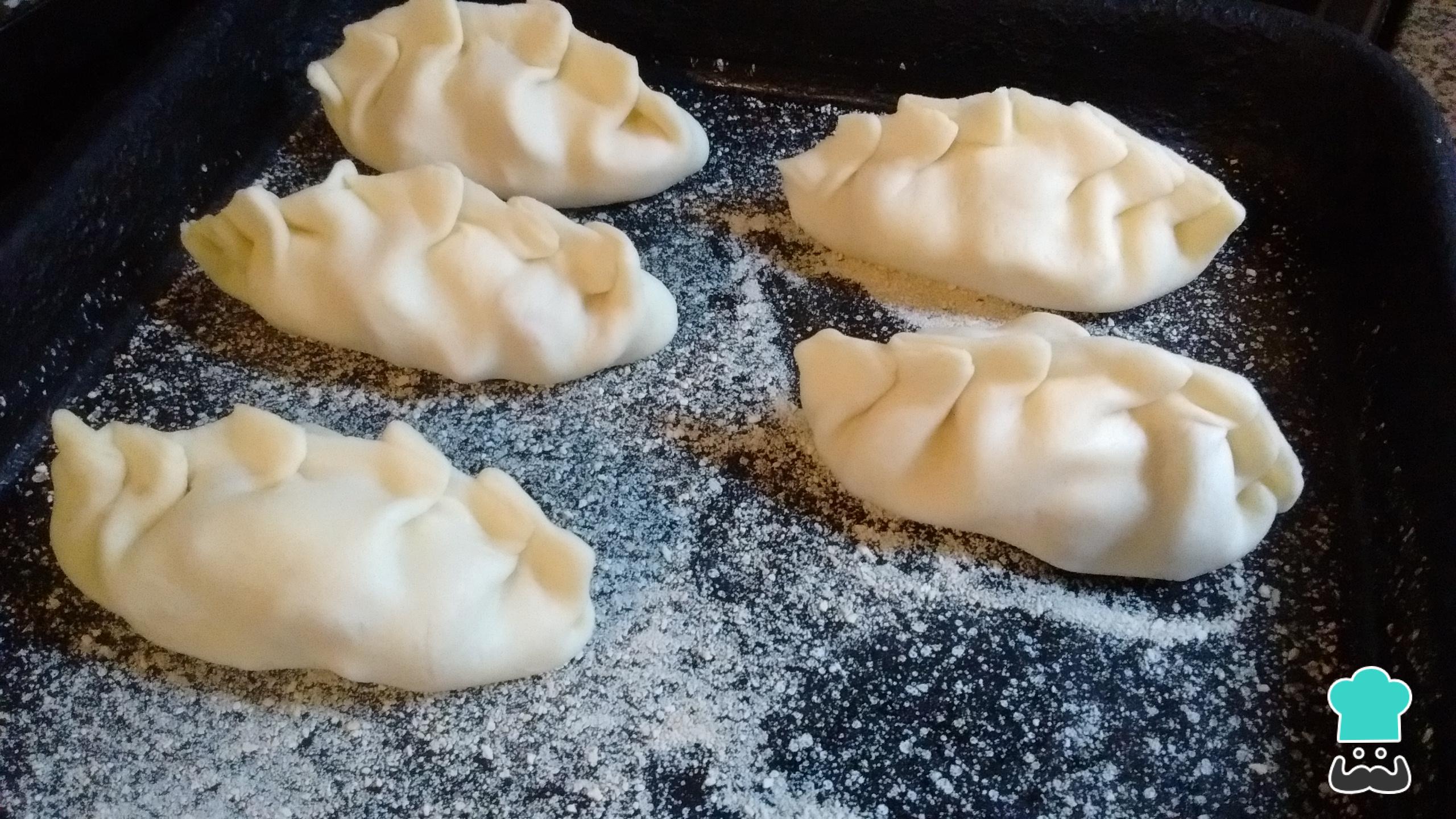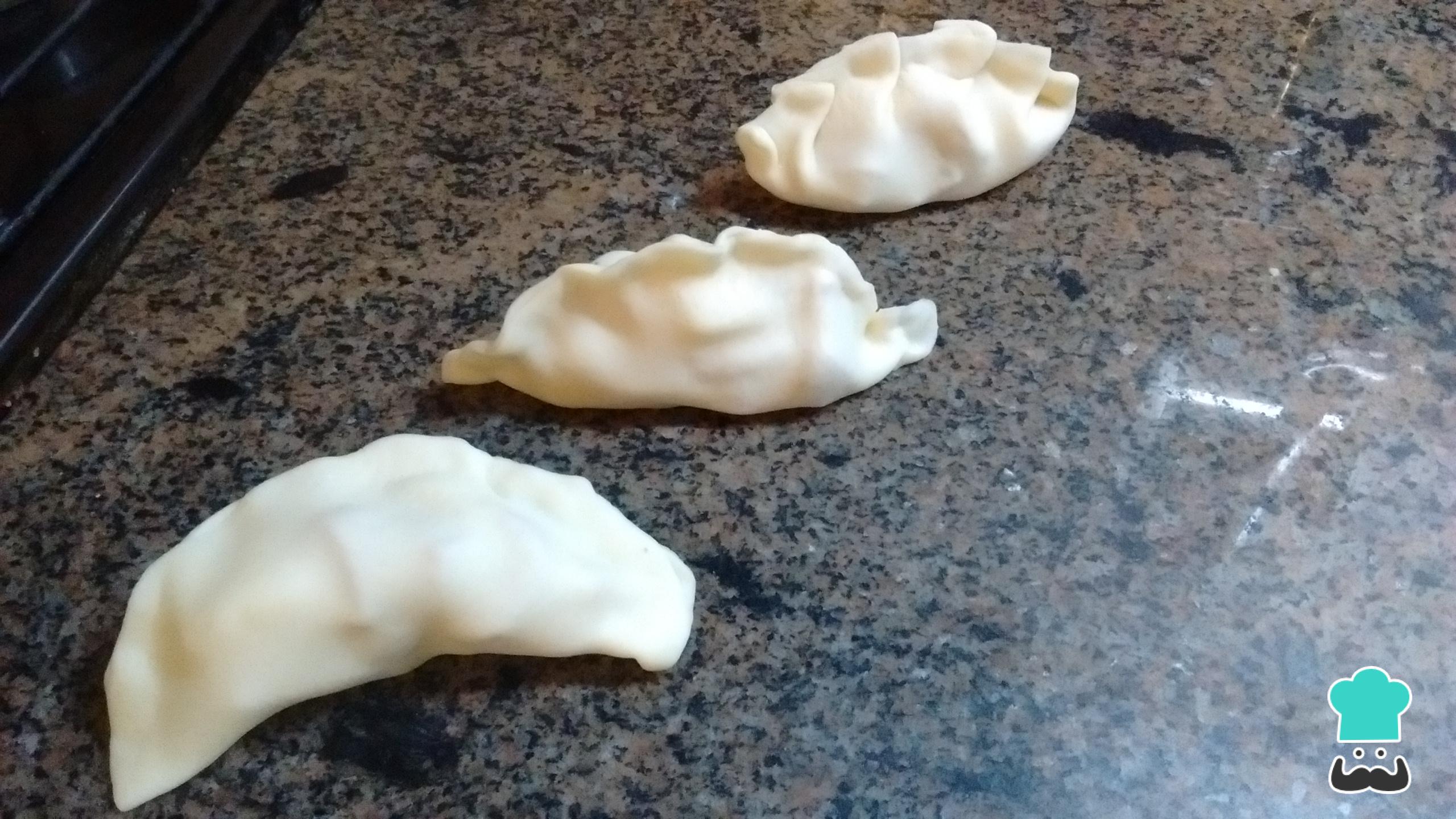 Una vez cerradas, haz un poco de presión con la yema de los dedos para asegurarte que no pierdas el relleno en la cocción. Hazles un repulgue a tu gusto para decorarlas y terminar de sellarlas.
