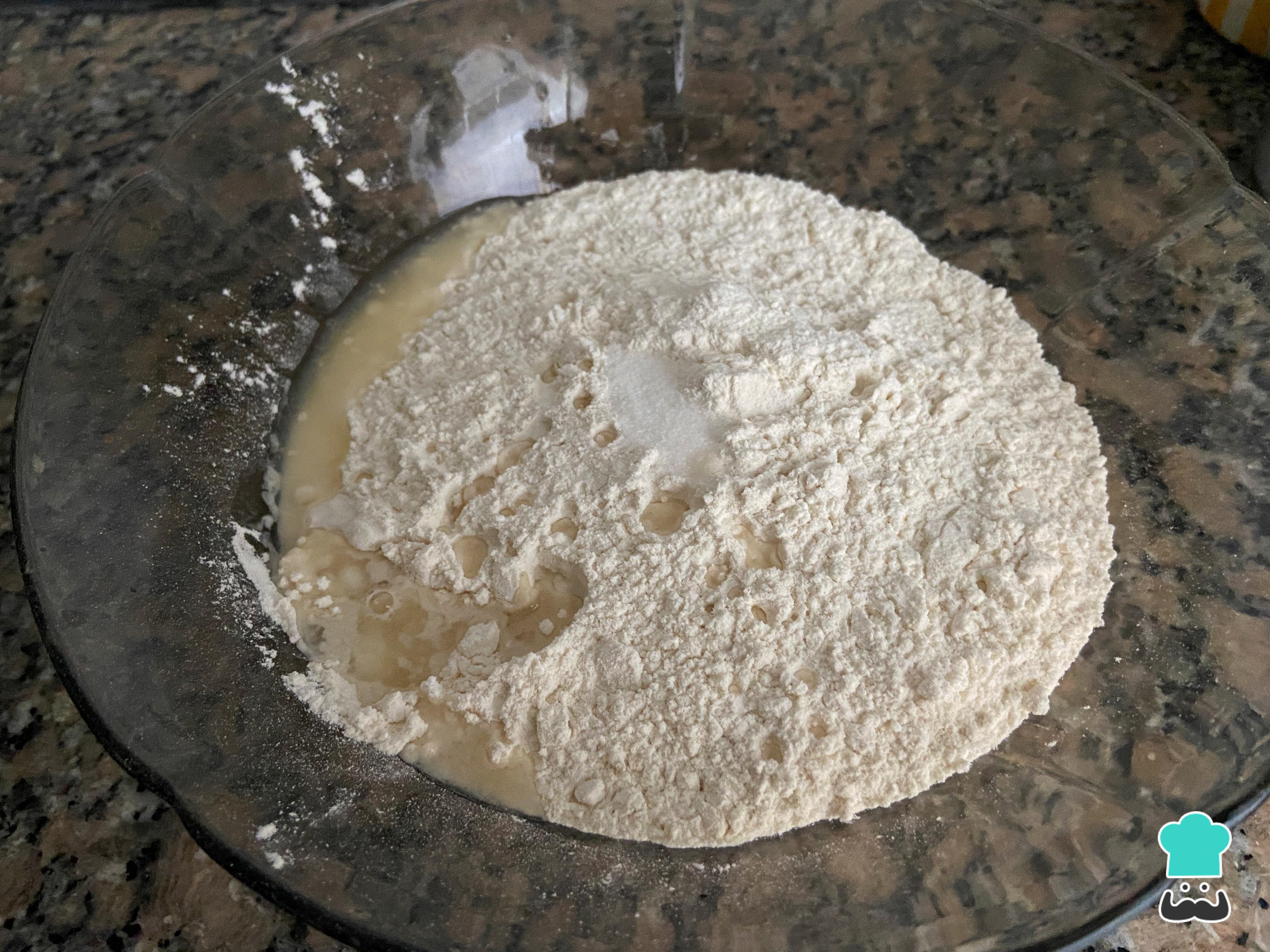 Para empezar con la receta de las empanadas de vigilia con acelga, primero deberás hacer la masa hojaldrada. Para ello, mezcla la harina con la cucharadita de sal. Si no puedes consumir sal, entonces evita agregarla.