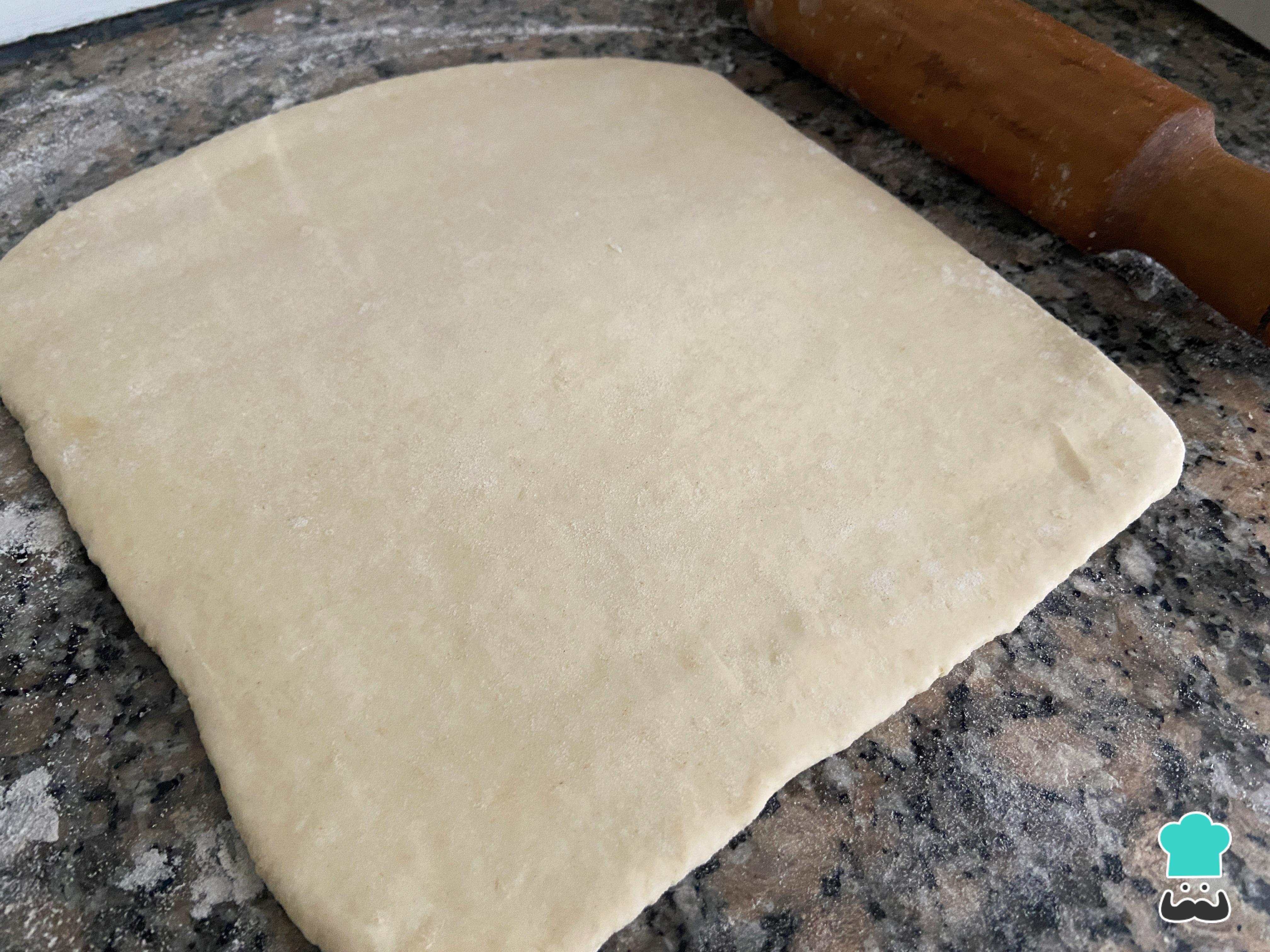 Ubica los pliegues hacia ti y estira la masa nuevamente de forma vertical hasta 1 dedo de alto.