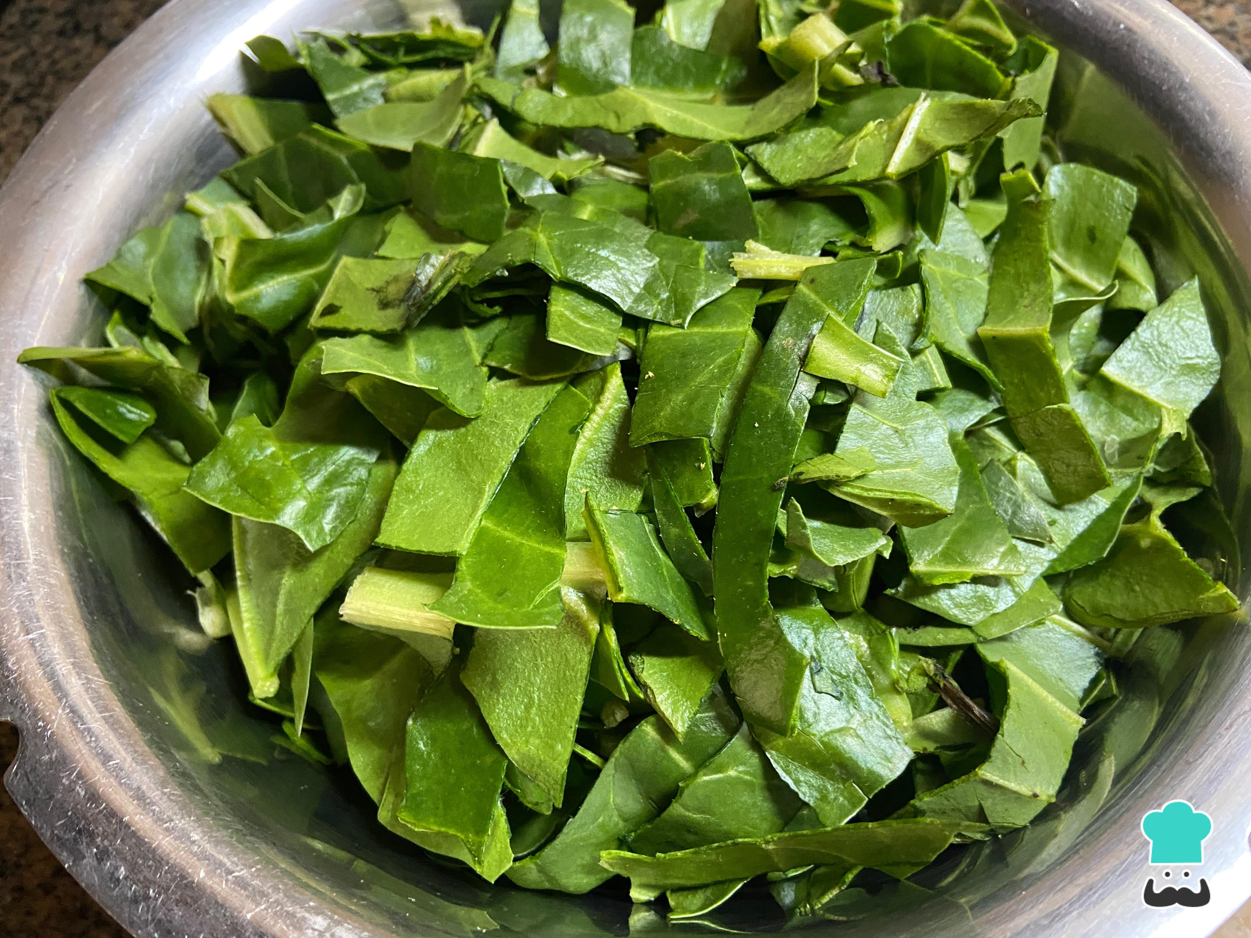 Pica las hojas de acelga limpias y reserva hasta que la cebolla esté cocida.