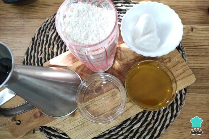 Prepara un recipiente en el que puedas trabajar la masa. Añade la harina, la manteca reblandecida, el agua, el aceite y un pellizco de sal. Amasa dentro del recipiente durante 10 minutos hasta que se alise la masa y puedas trabajarla sin que se te pegue en las manos.