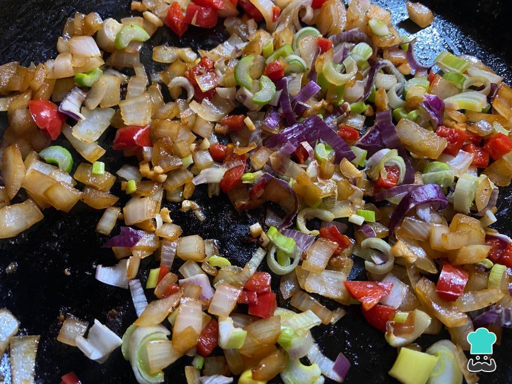 Cuando haya dorado, agrega la cebolla de verdeo y saltea un par de minutos más.