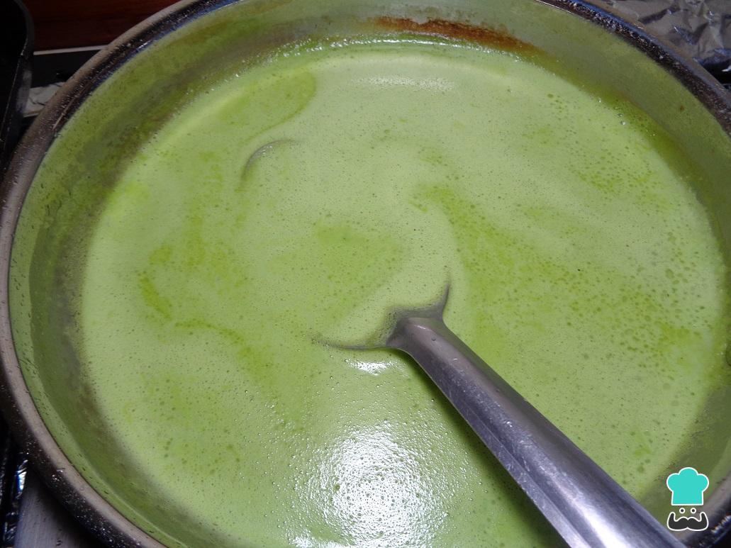 Esta salsa de chile poblano la colocamos en una pequeña cacerola en la que debemos derretir la mantequilla, y sobre esta mantequilla derretida y caliente añadimos la salsa y dejamos que se fría muy bien. Rectificamos de sazón y de ser necesario, añadimos alguna pizca más de sal o pimienta. Una vez lista nuestra salsa la retiramos del fuego y reservamos un momento.