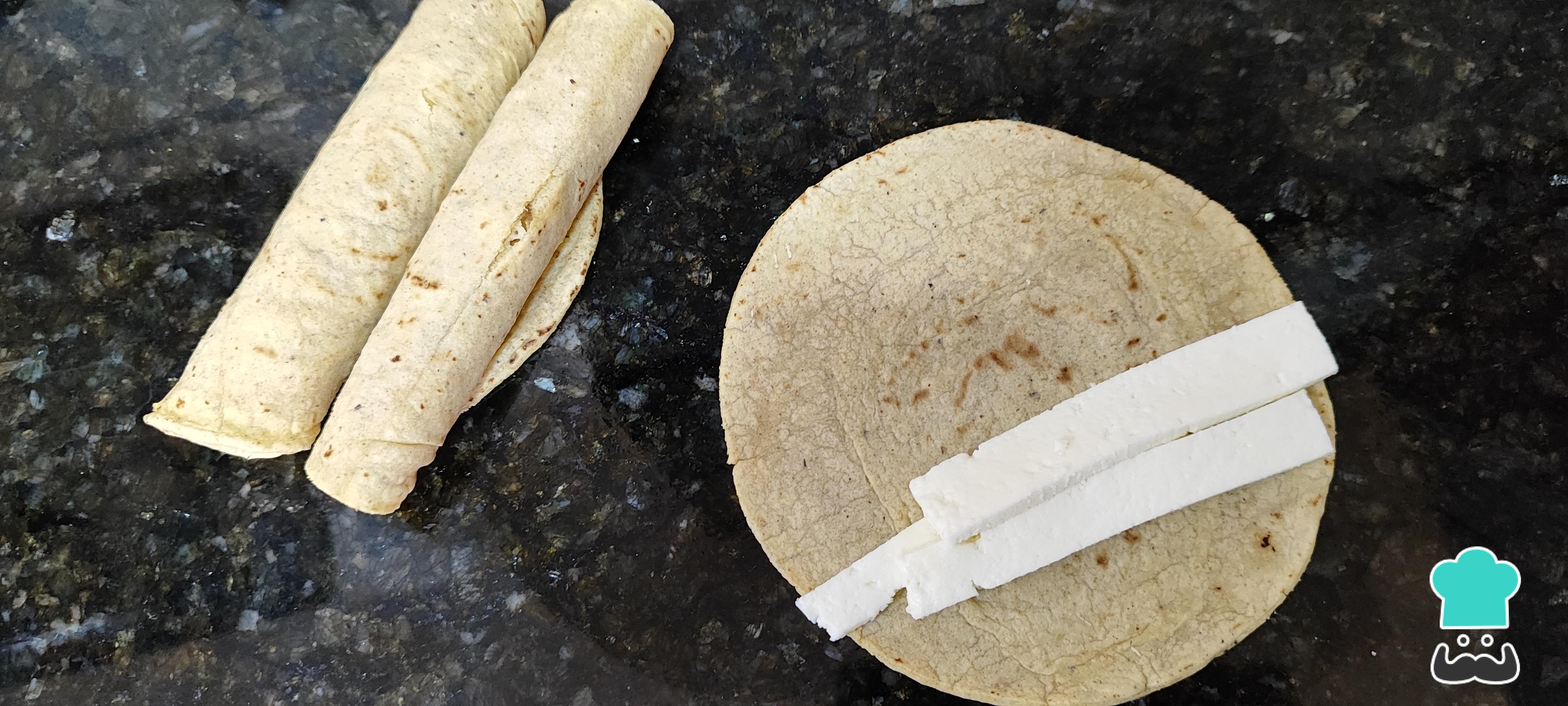 Una vez que las tortillas estén calientes y suaves, es hora de incorporar el queso a las enchiladas. Para esto, ralla el queso o corta en pedazos o tiras delgadas, rellena y distribuye bien sobre la tortilla, luego enrolla con cuidado formando una especie de cilindro. Es importante no poner demasiado queso para que no se desborden y se pueda cerrar bien la tortilla. Si lo prefieres en lugar de enrollar puedes doblar por la mitad. Continua hasta terminar con todo el queso.